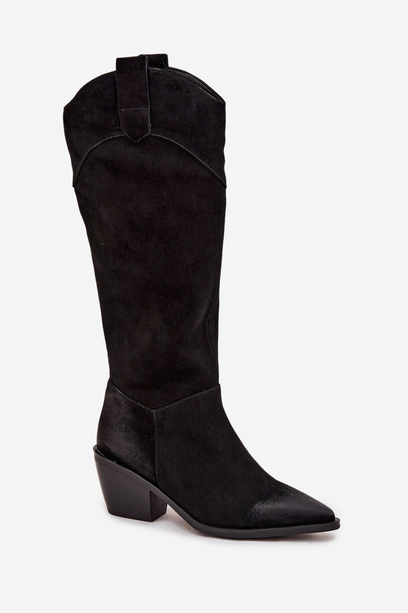 Dámske vysoké topánky v cowboyskom štýle s podpätkami z pravej semišovej kože Artiker 57C0232, čiernej farby