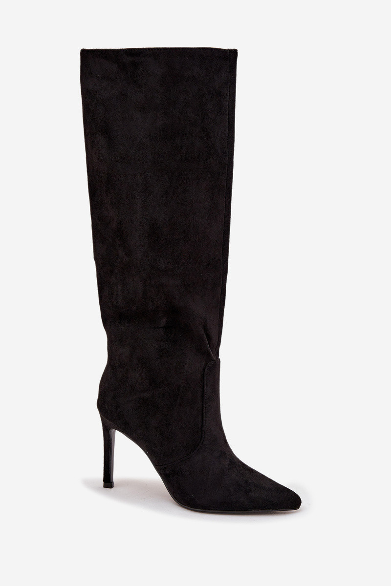 Čierne zateplené dámske vysoké topánky s tenkými podpätkami z umelého zamšu Rosavine