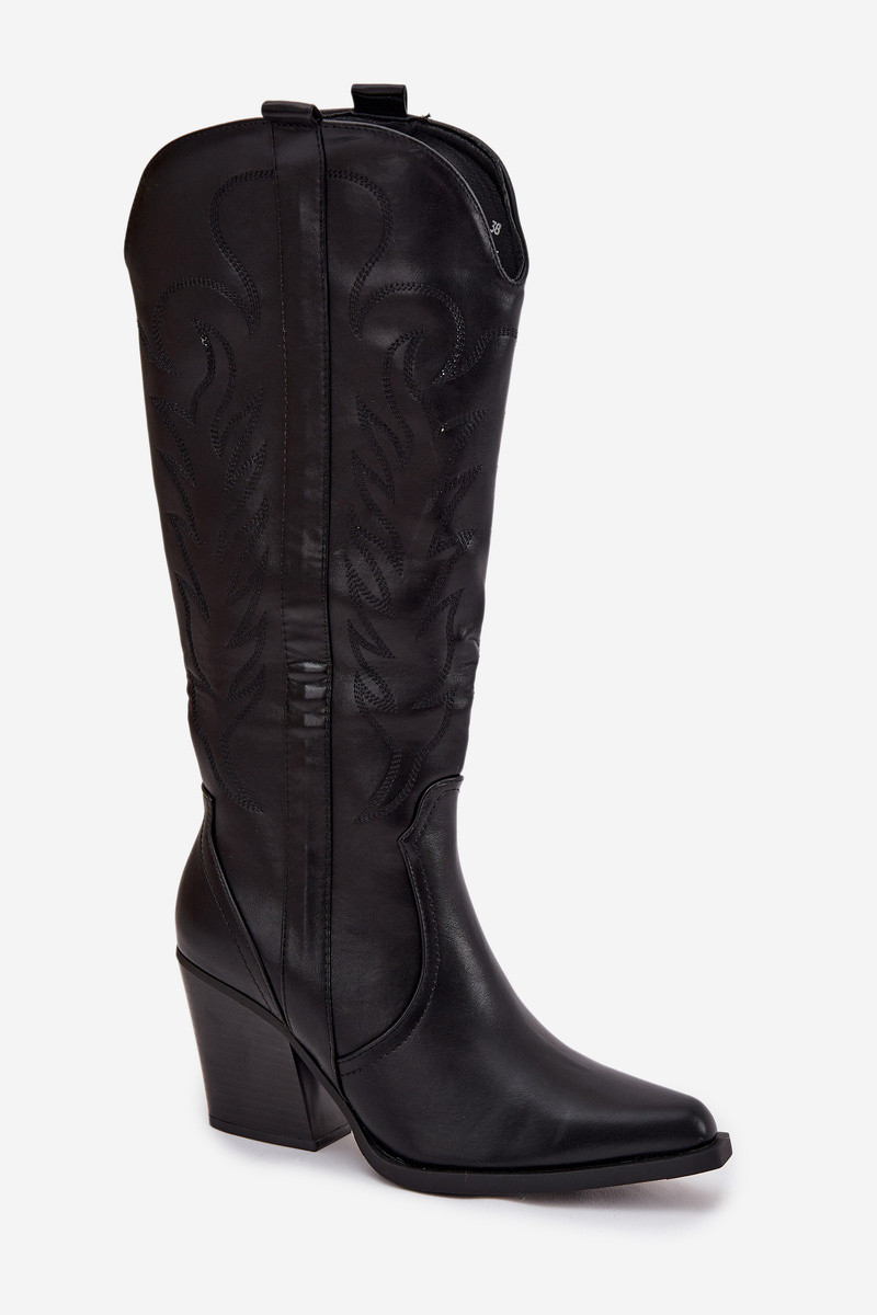 čižmy kovbojský štýl s podpätkami Eko Kožené zahriať sa čierna Zareen