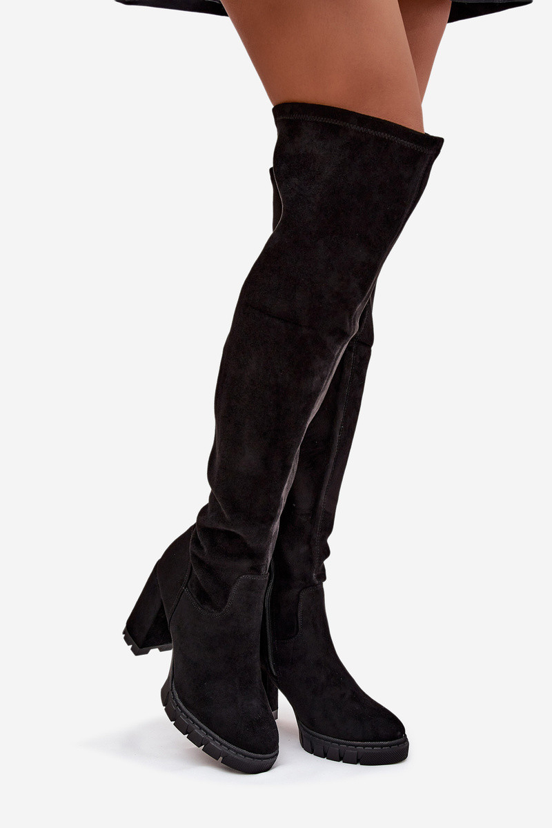 dámske čižmy nad kolenom s podpätkami z eko semišuoIne čierna Tahlina