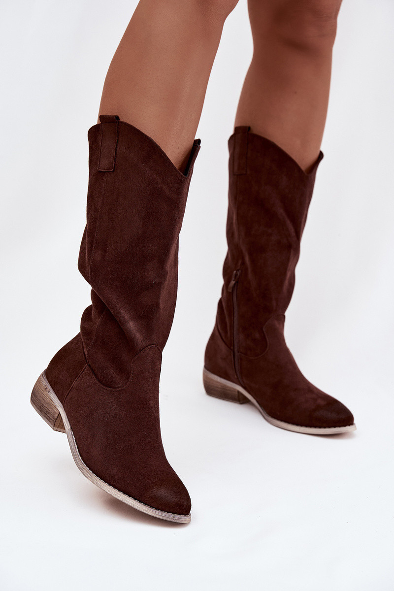 čižmy kovbojský štýl Zapnuté nízkom opätkuz eko semišuu CzekoladoIne Cherrie
