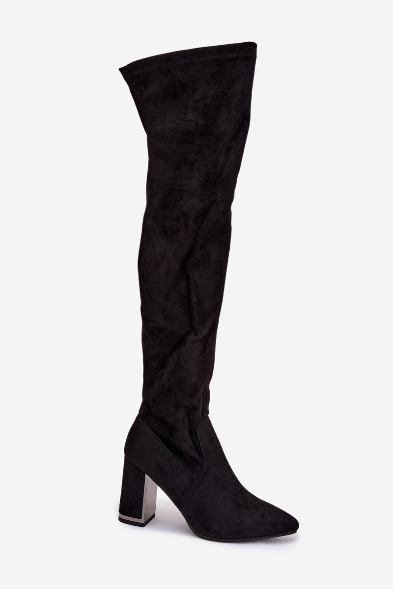 Čierne dámske vysoké čižmy nad kolená s podpätkami z umelého semišu Thamine