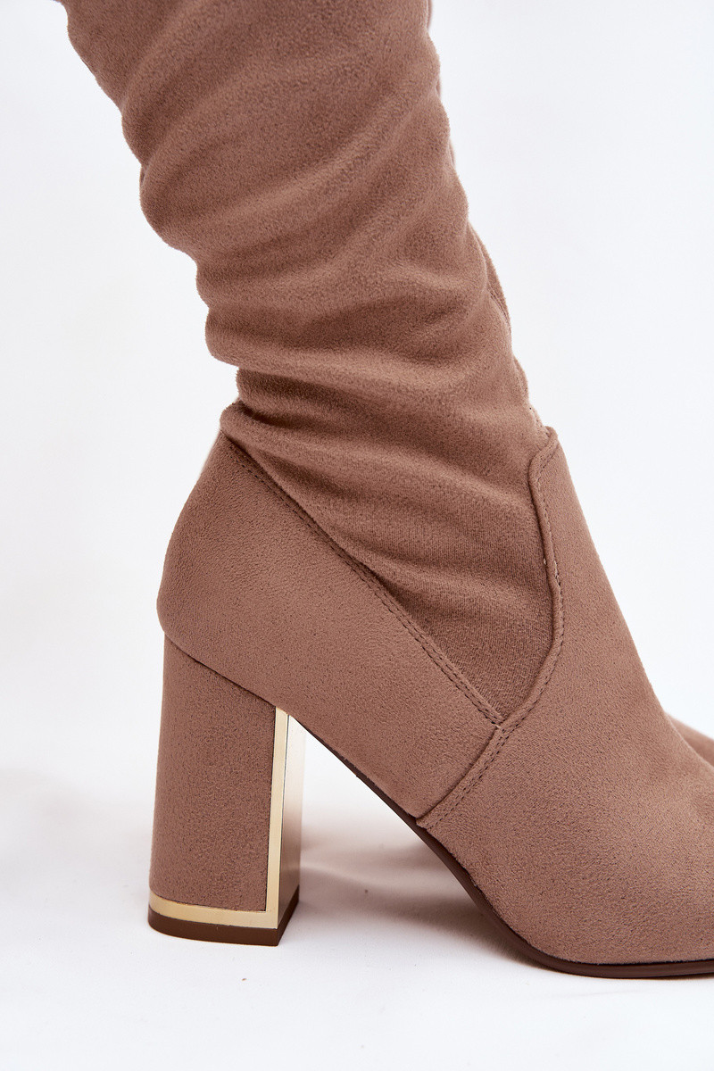 dámske čižmy z eko semišuoIne nad kolenom s podpätkami béžová Thamine