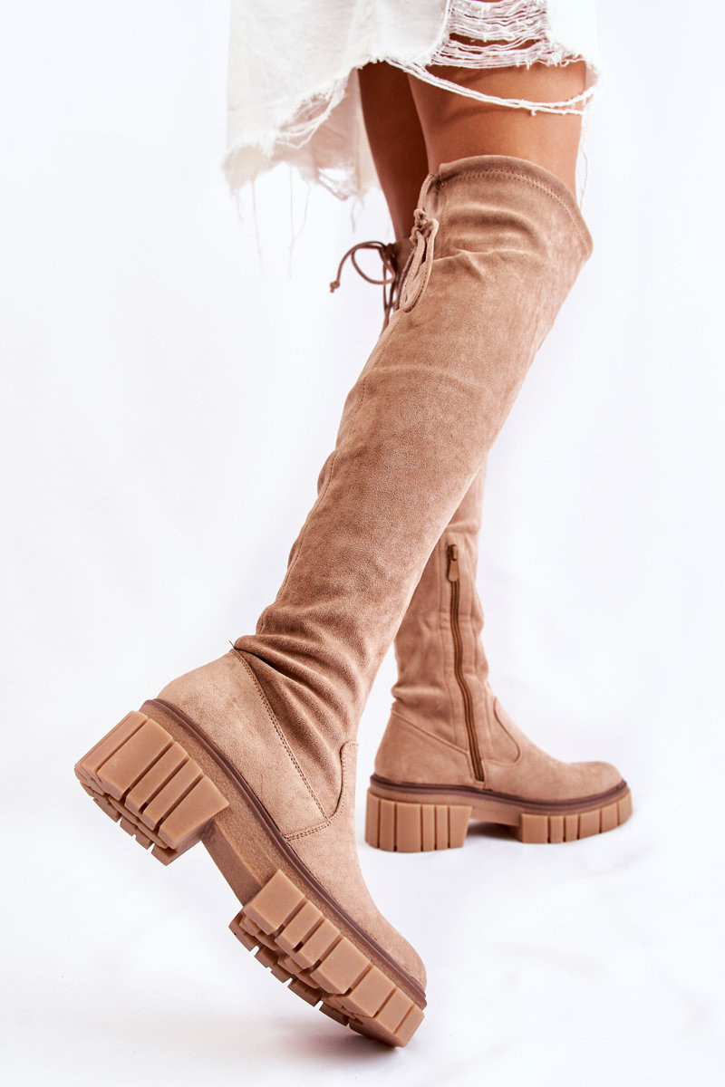zo semišu Dámske čižmy nad kolenom béžová Cheera