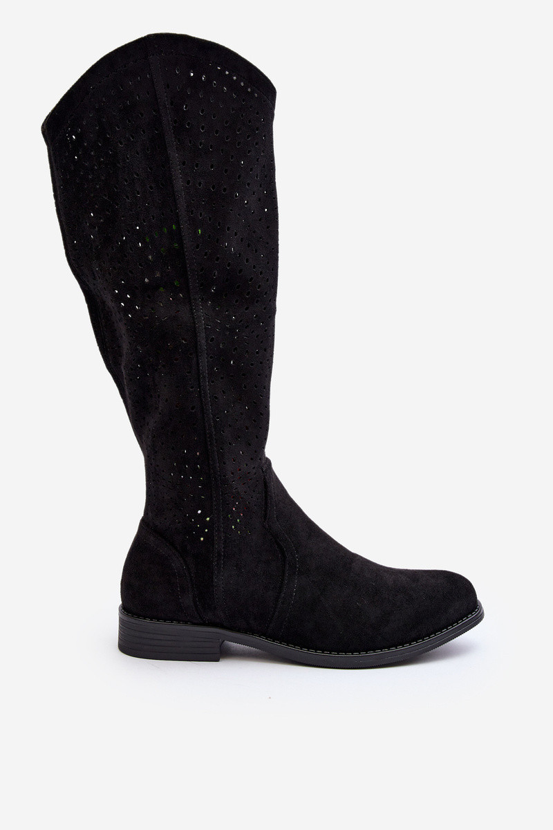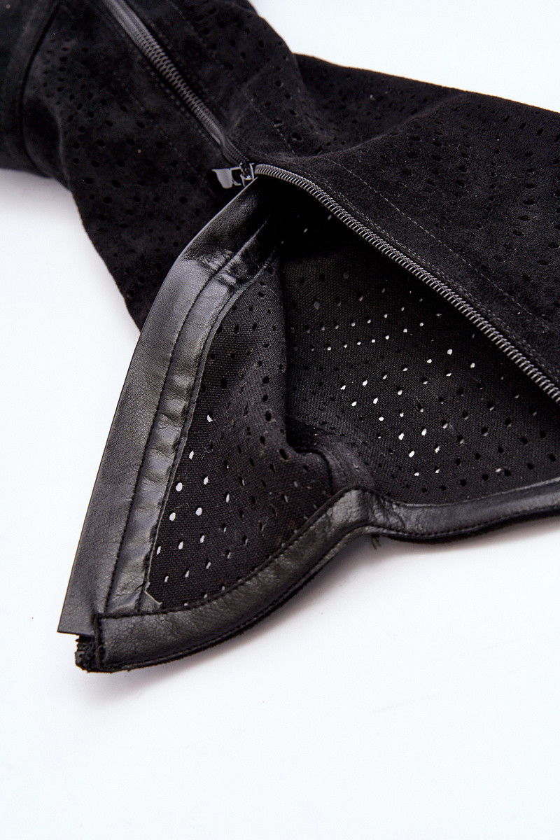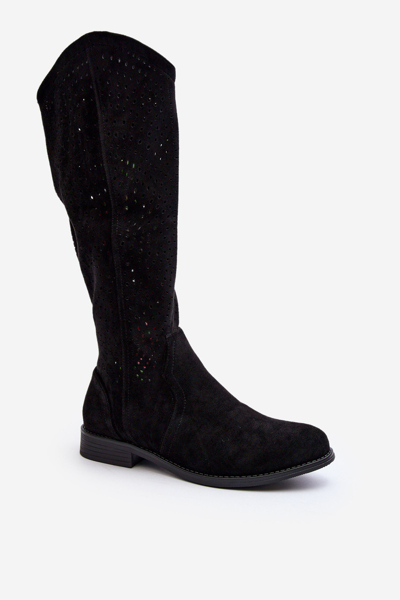 S.Barski HY66-150 s prvkami prelamovania čižmy so širokými podpätkami čierna