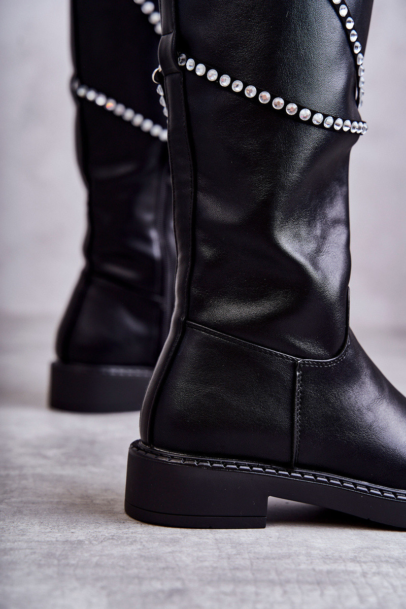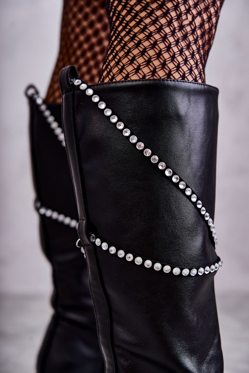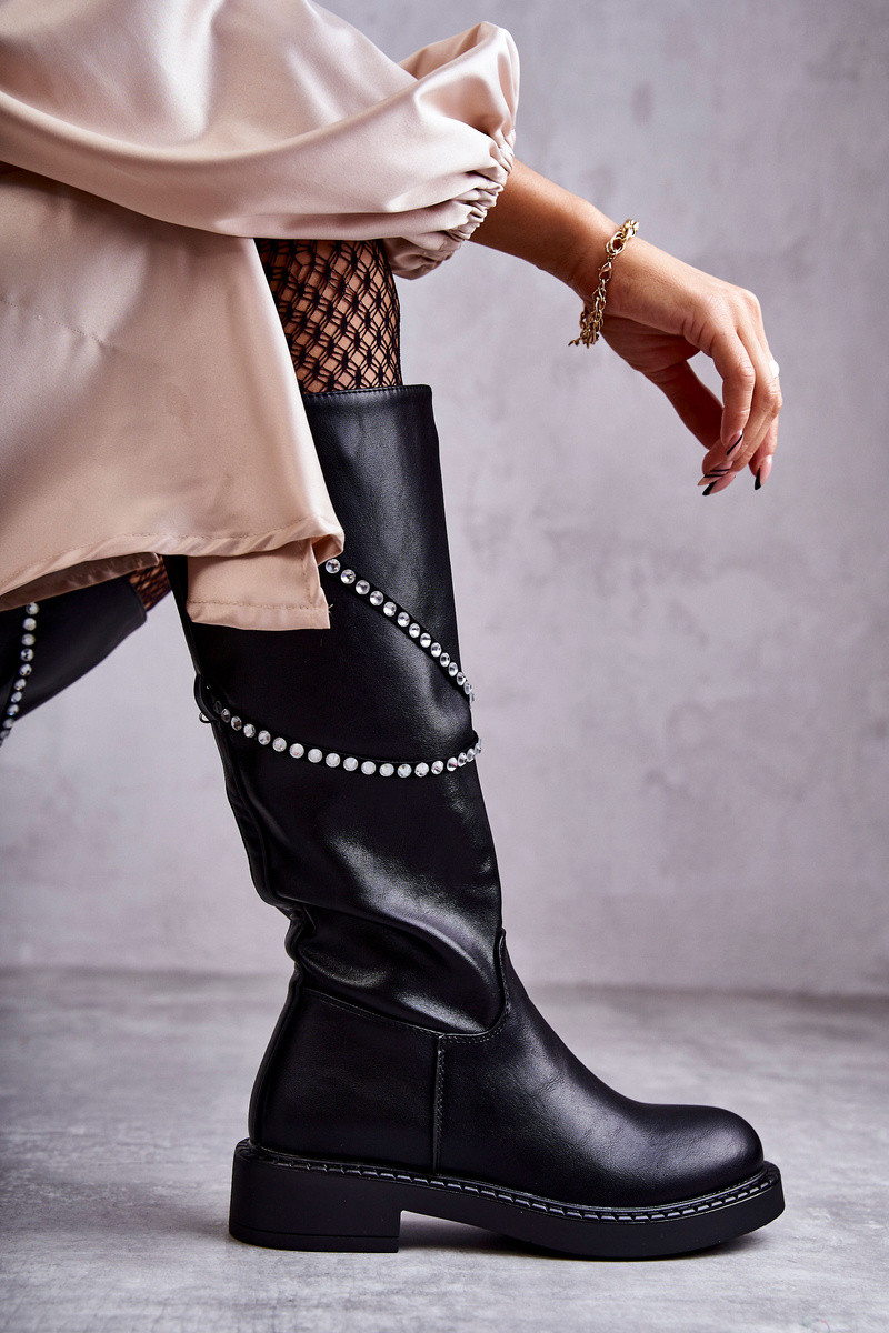 Dámske vysoké čižmy s krásnymi detailmi čiernej farby Finlay