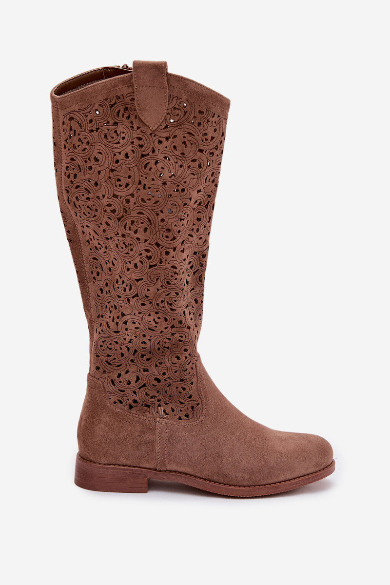 Dámske vysoké čižmy s otvorenými prvkami a širokými podpätkami S.Barski HY61-8023, hnedej farby