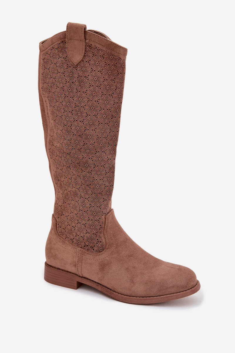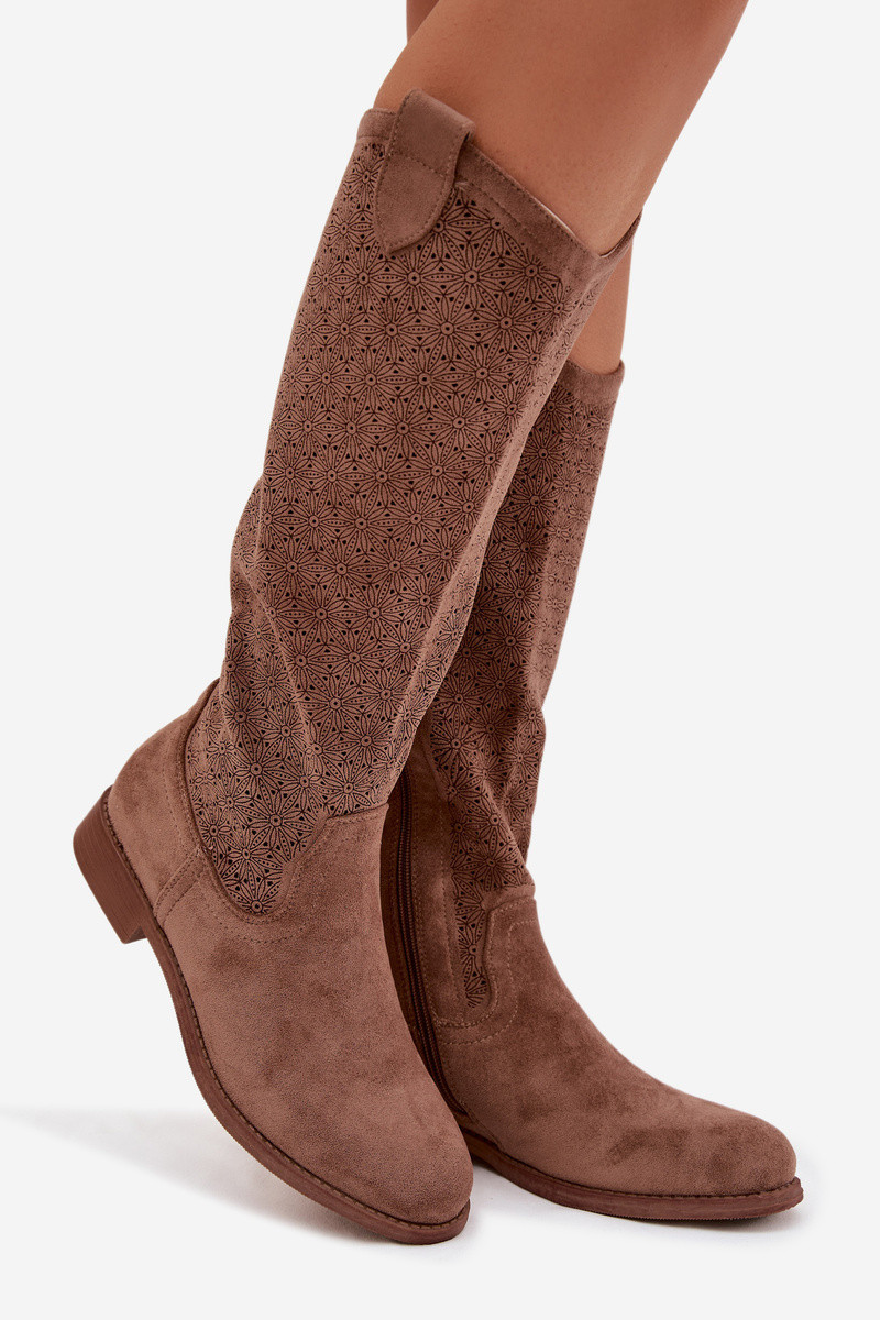dámske čižmy s prelamovanými prvkami so širokými podpätkami S.Barski HY61-8022 Hnedá farba