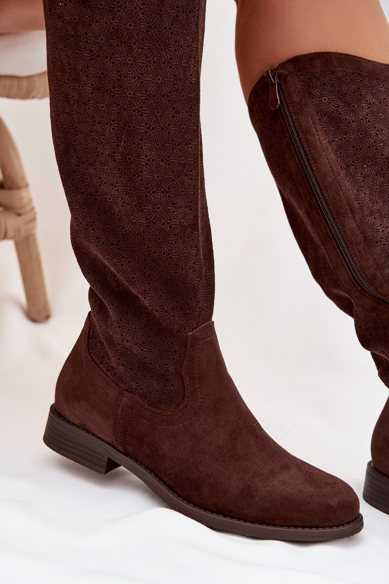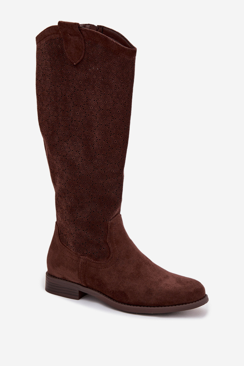 dámske čižmy s prelamovanými prvkami so širokými podpätkami S.Barski HY61-8022 CzekoladoIne