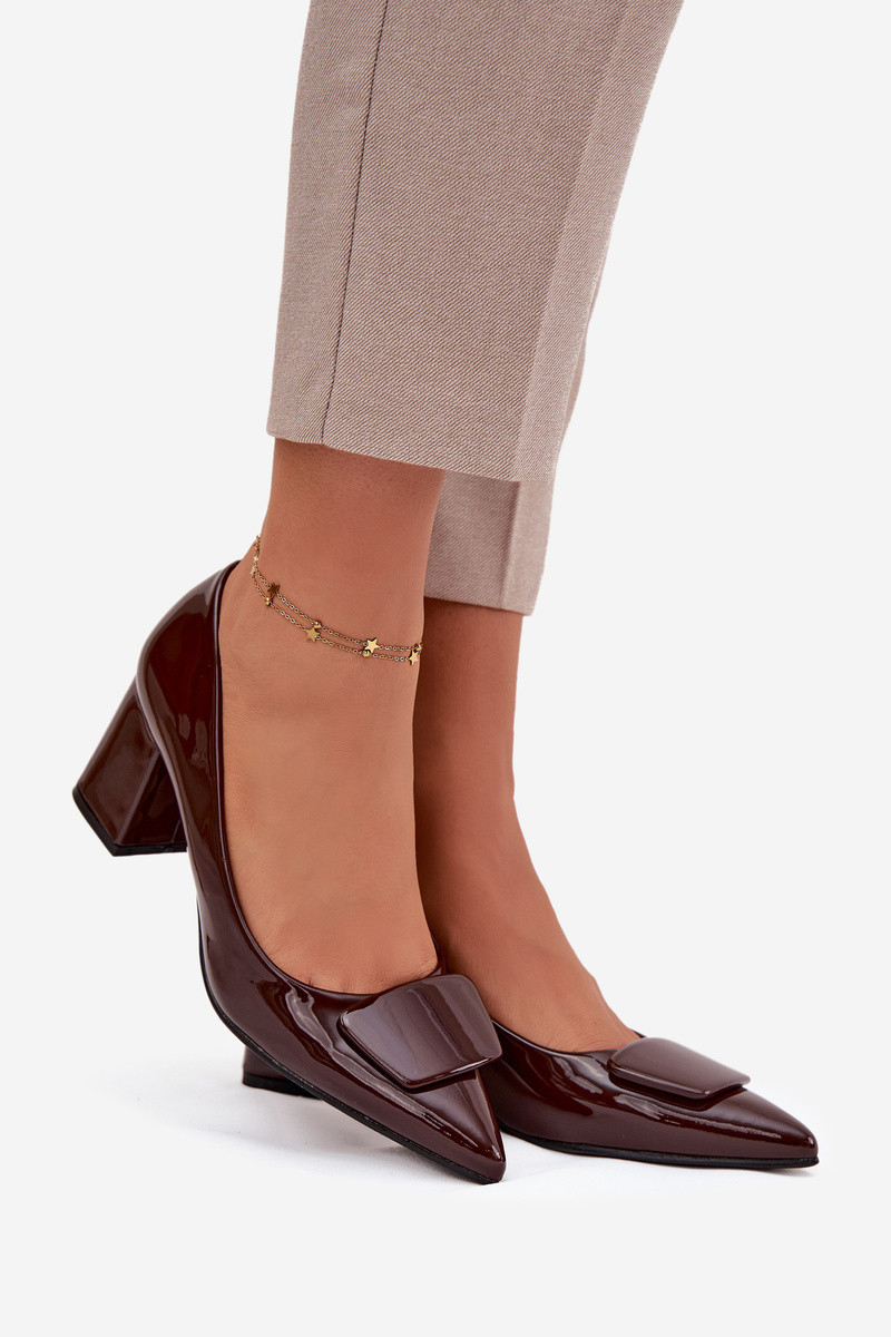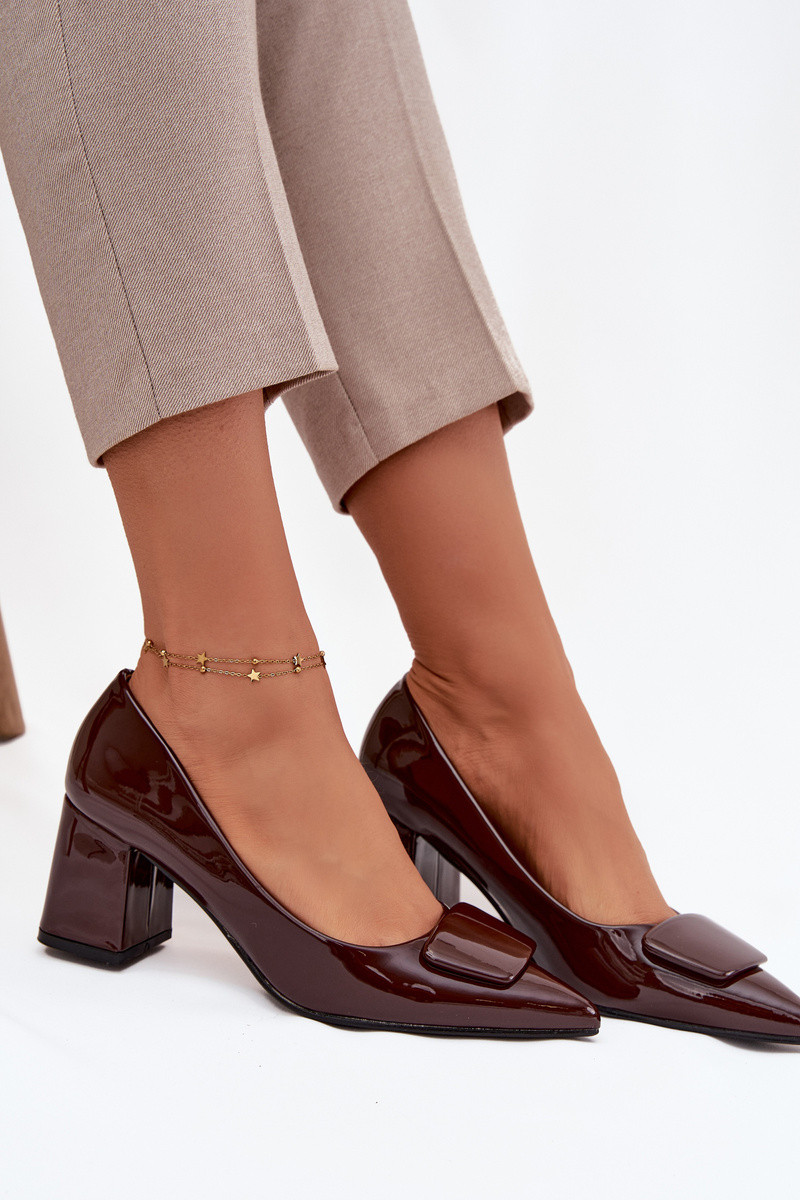 s lakovým efektom Topánky s podpätkami s ozdobami CzekoladoIne Isoline