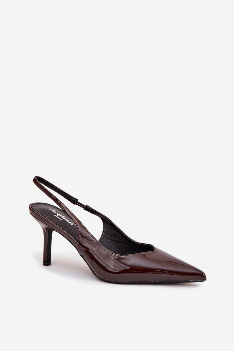 Phelia topánky v čokoládovej farbe s tenkými opätkami a lakovým efektom