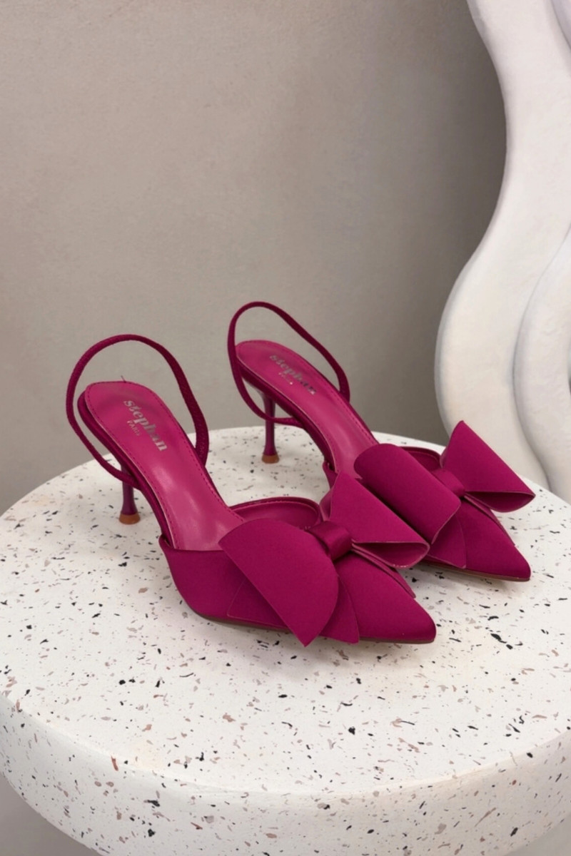 Ružové vysoké topánky s otvorenými pätami a mašľou „Eklevia"