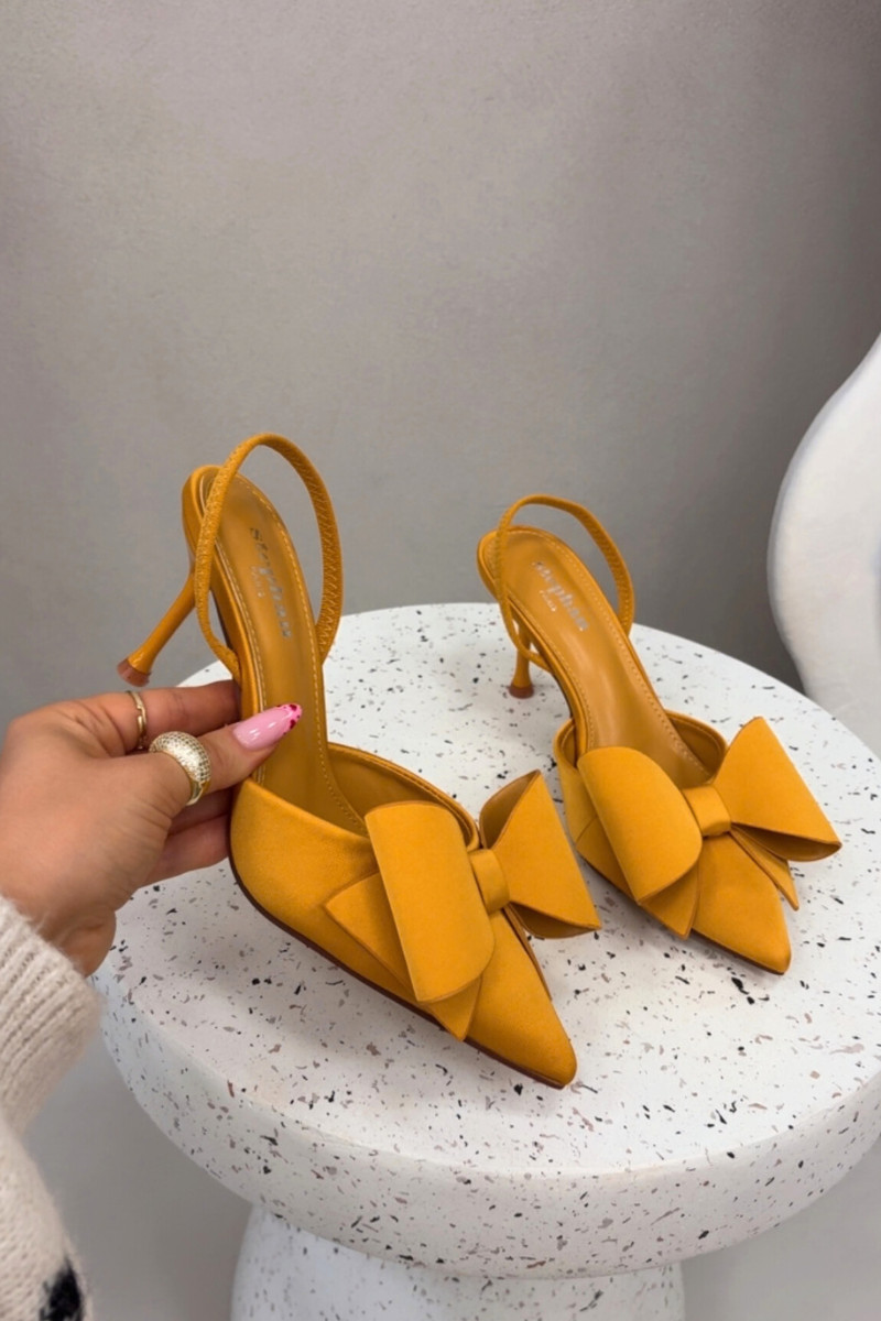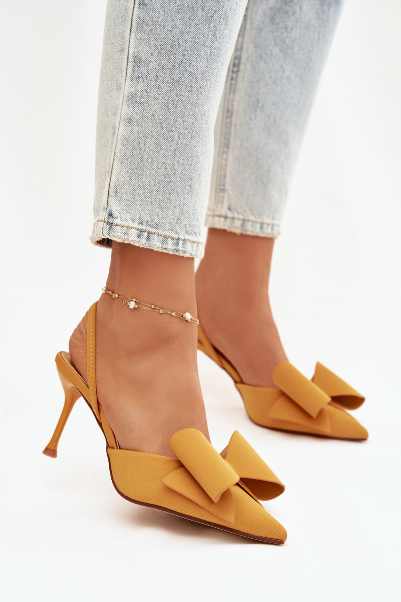 Žlté vysoké topánky s otvorenými pätami a mašľou „Eklevia"