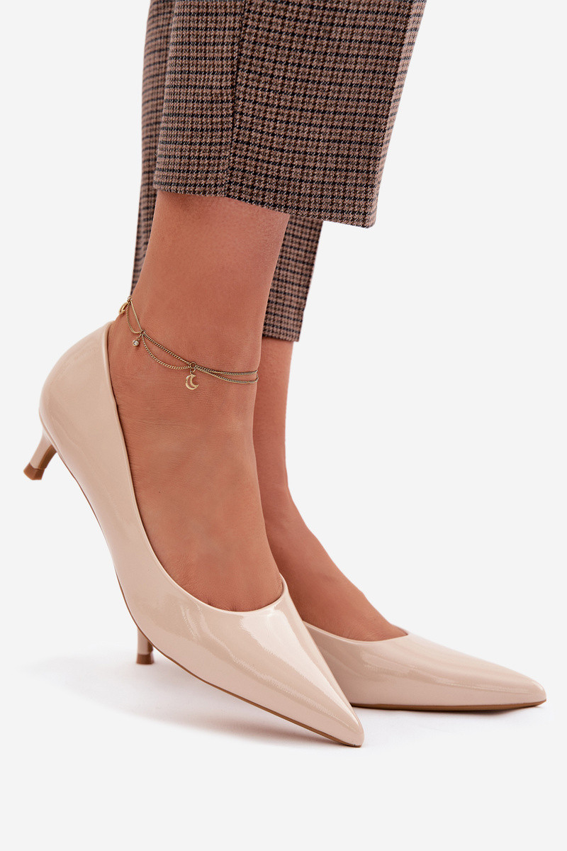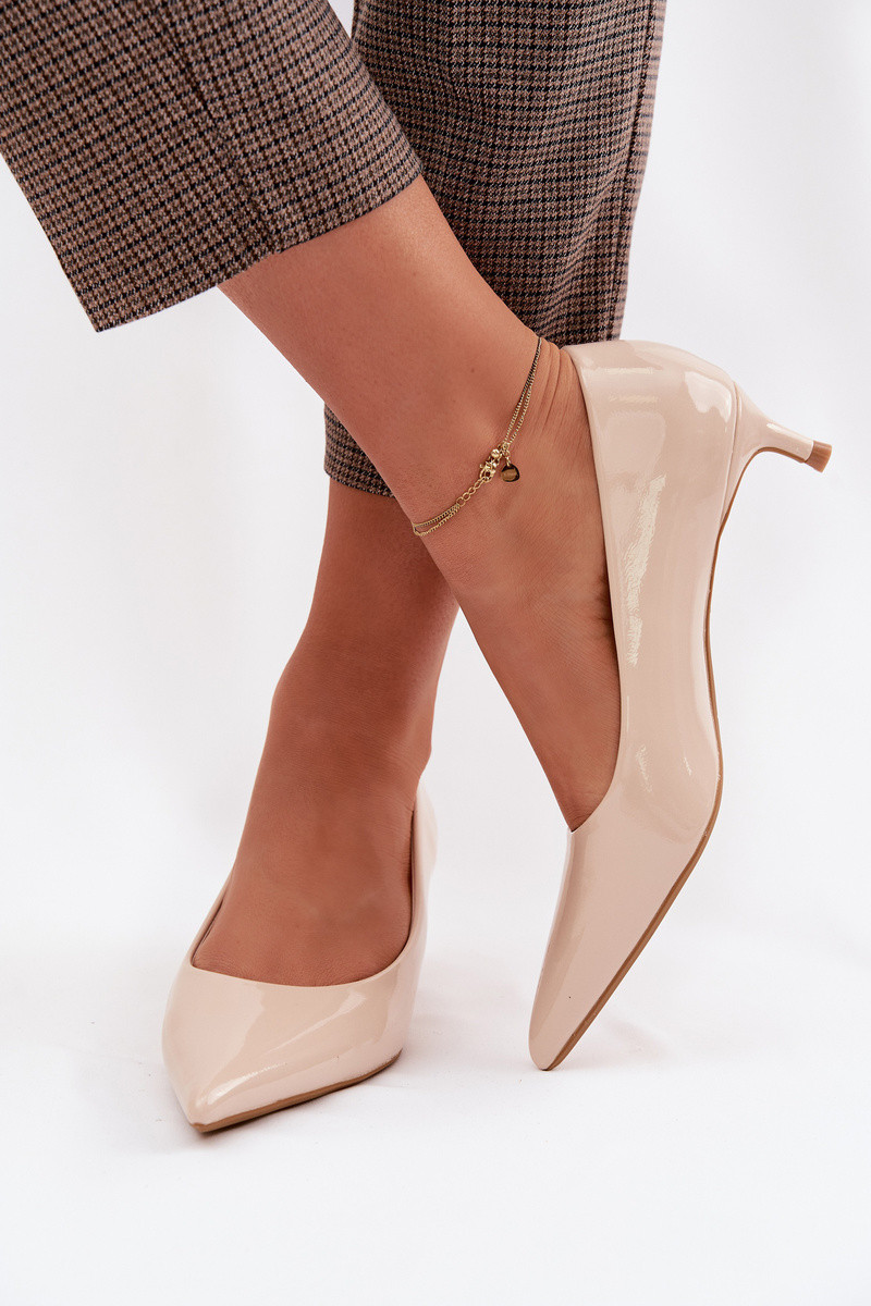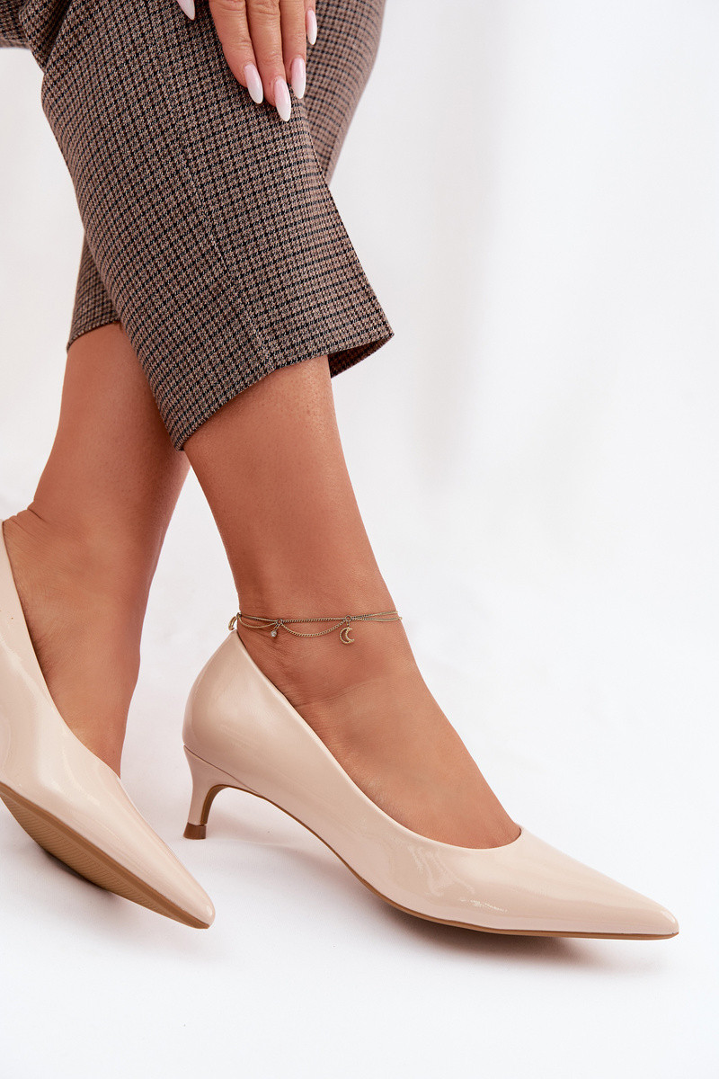 Lakované topánky s nízkym podpätkom pieskovej farby Girela