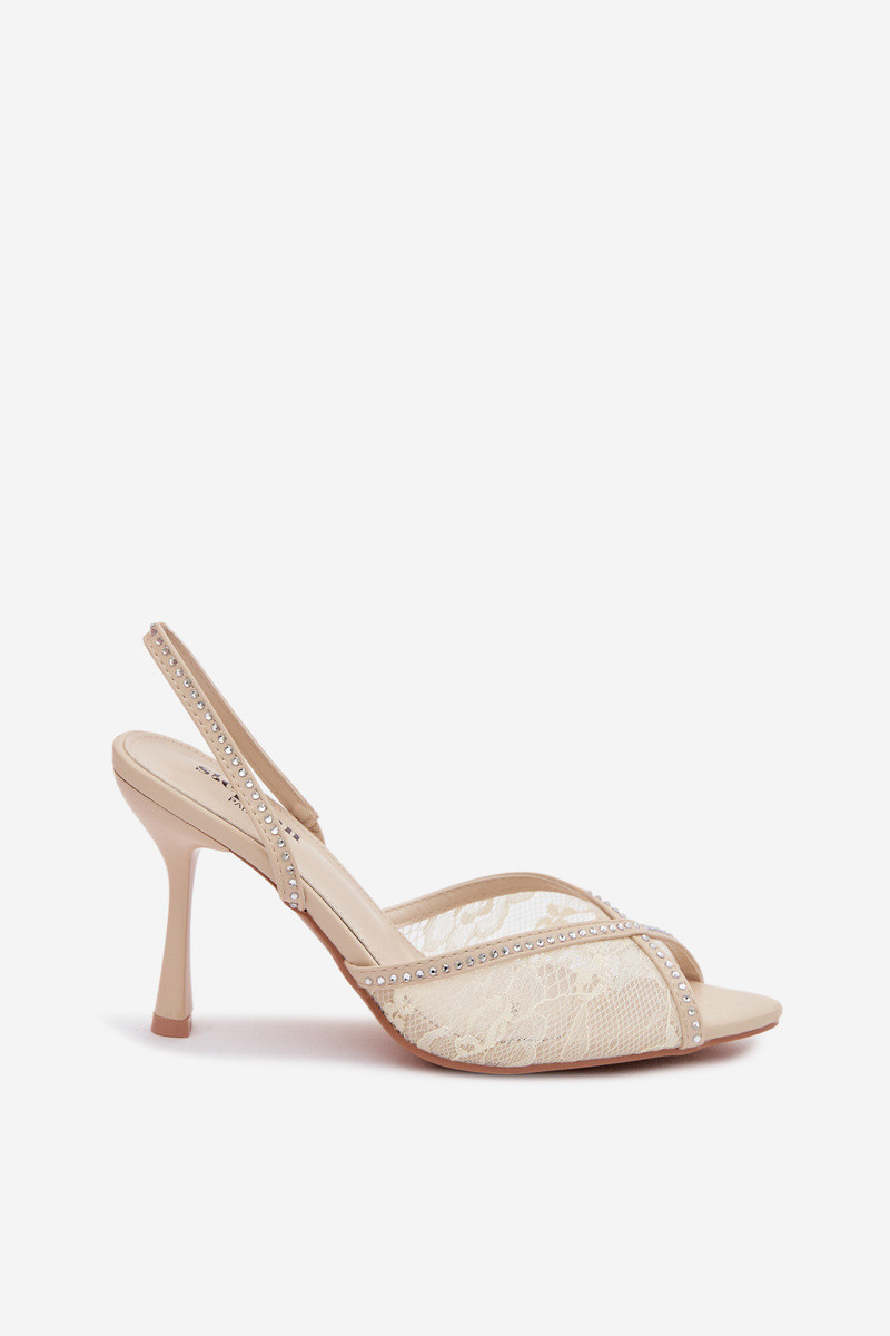 Dámske sandále s tenkými podpätkami a ozdobenou čipkou v čiernej farbe Melivelle