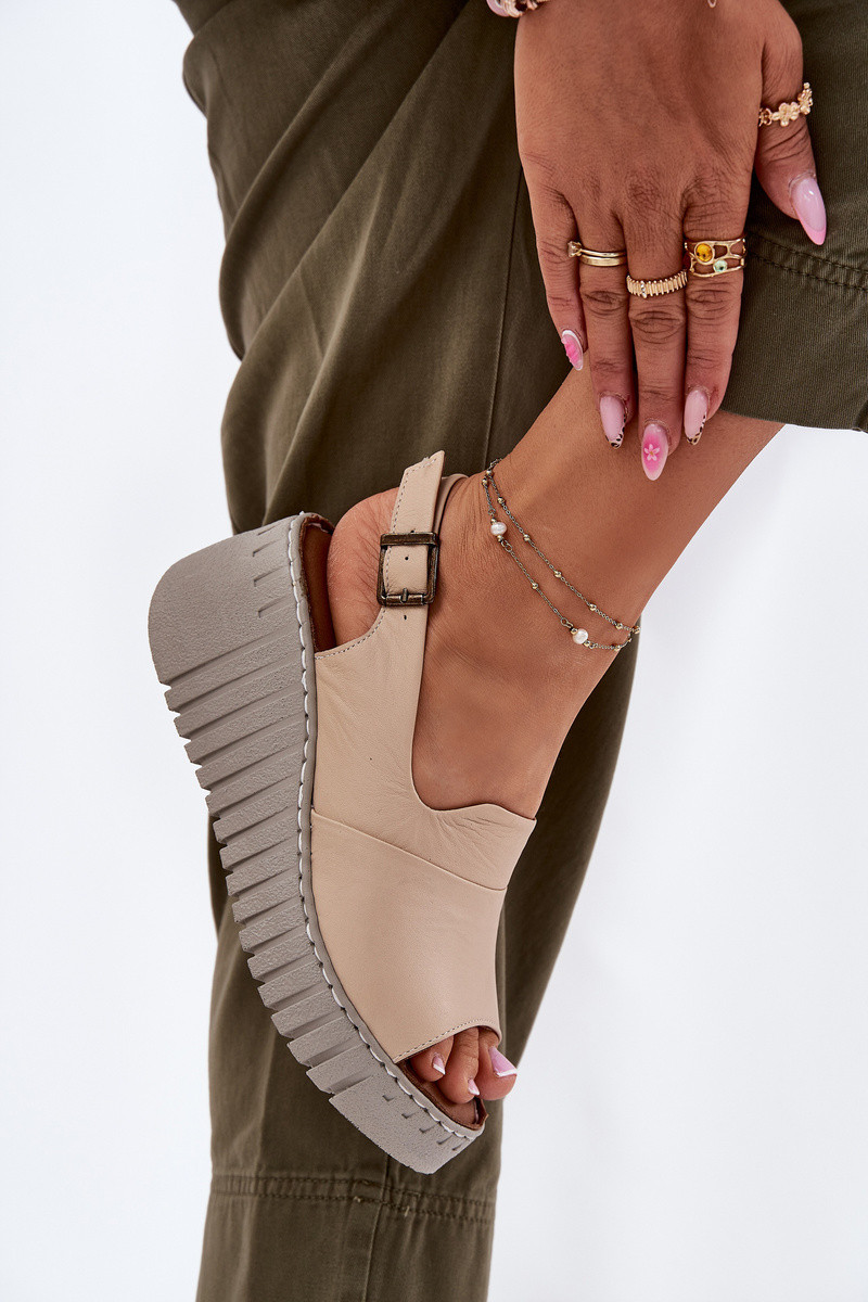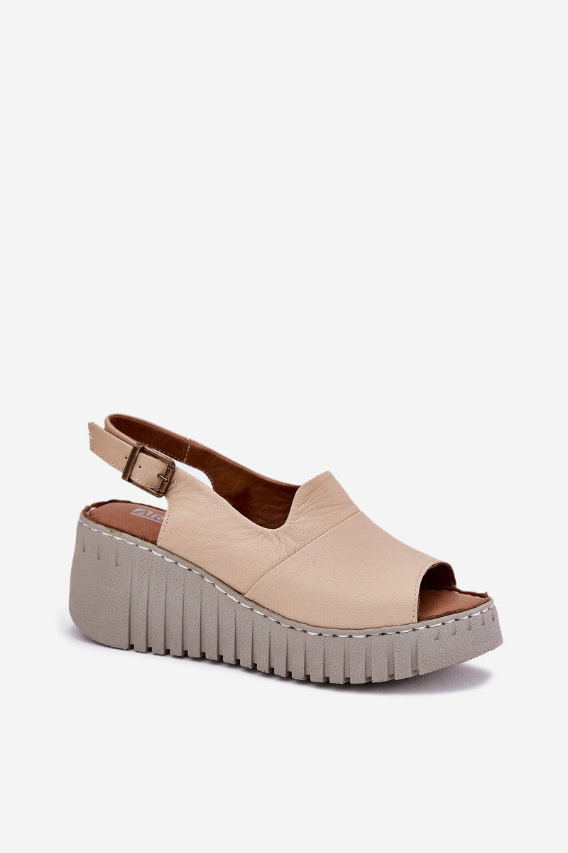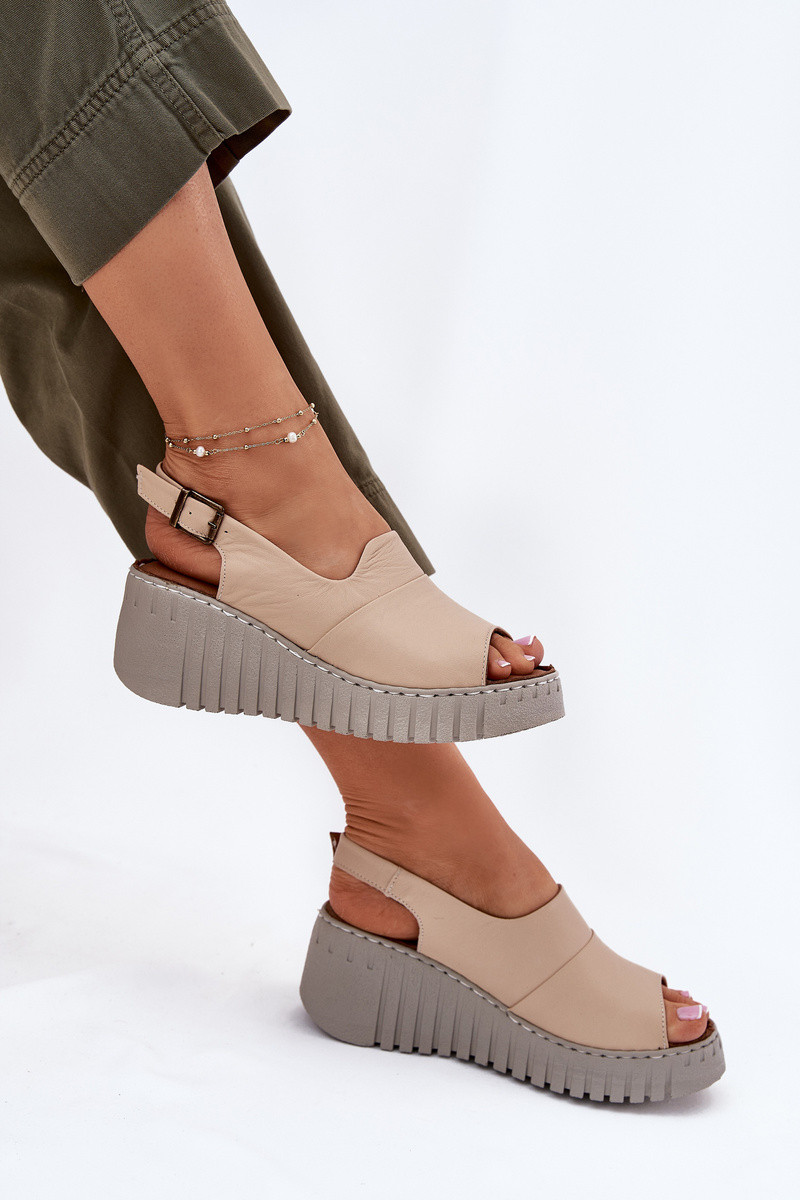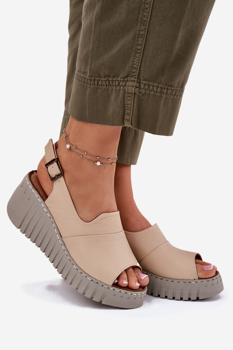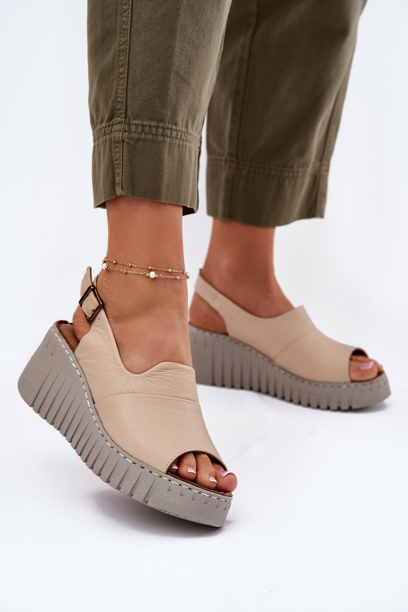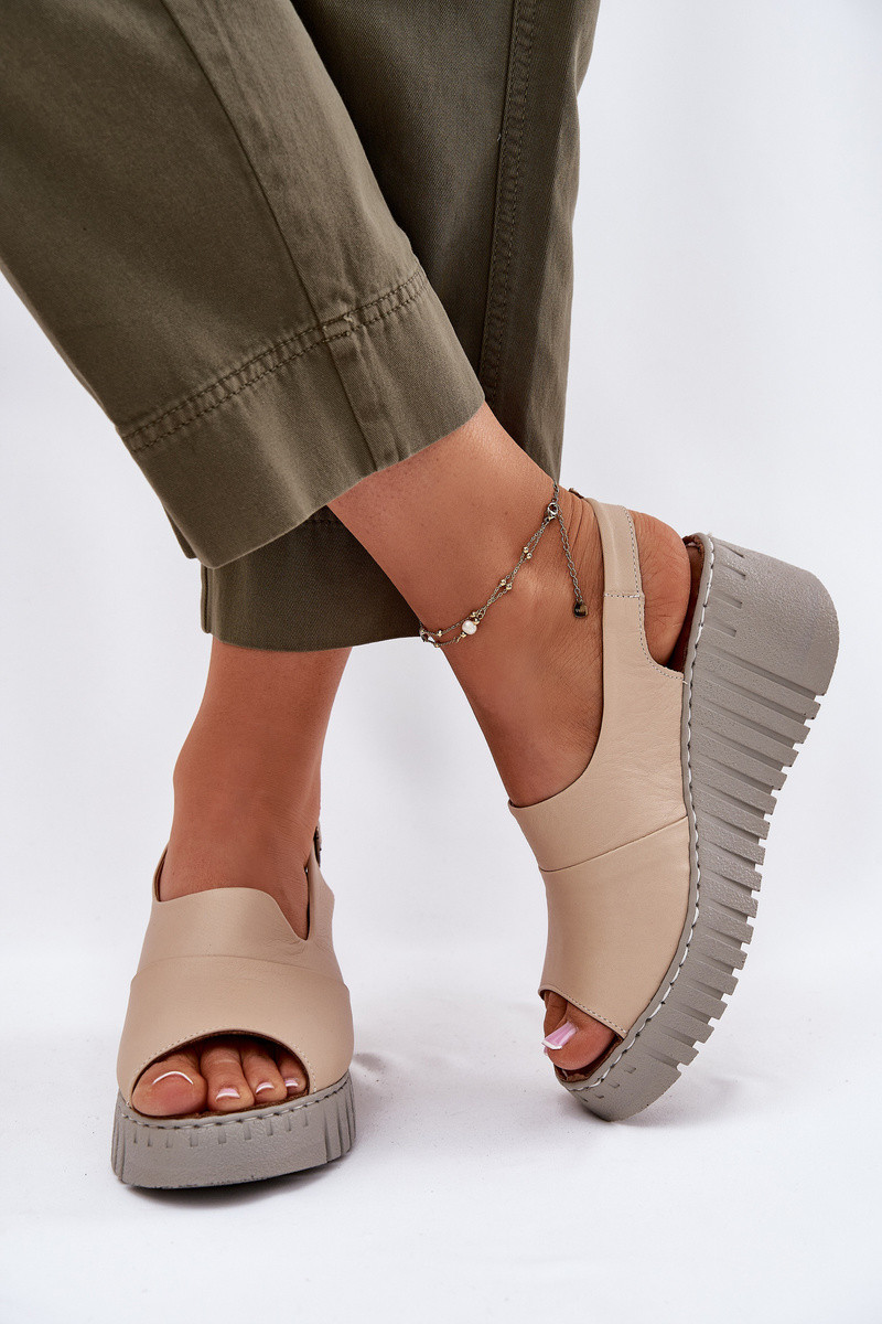 Pieskové dámske sandále z prírodnej kože na platforme, Artiker 56C0957