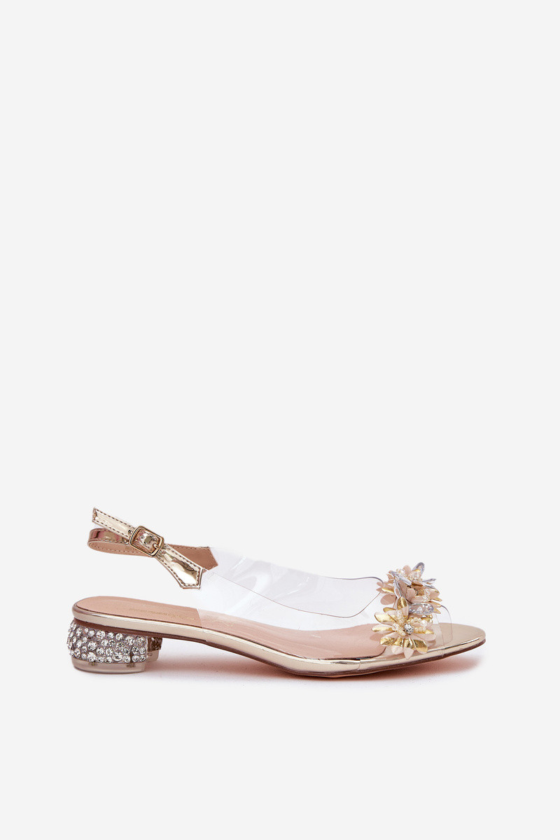 Priesvitné sandále na nízkom opätku s dekoráciou D&A MR51-709 zlatej farby
