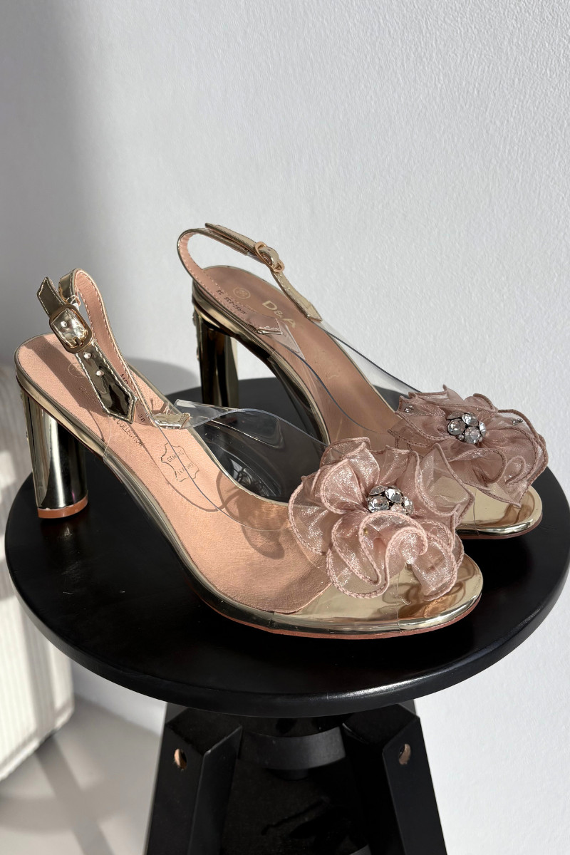 Sandále s opätkami a ornamentmi D&A MR52-236 zlaté