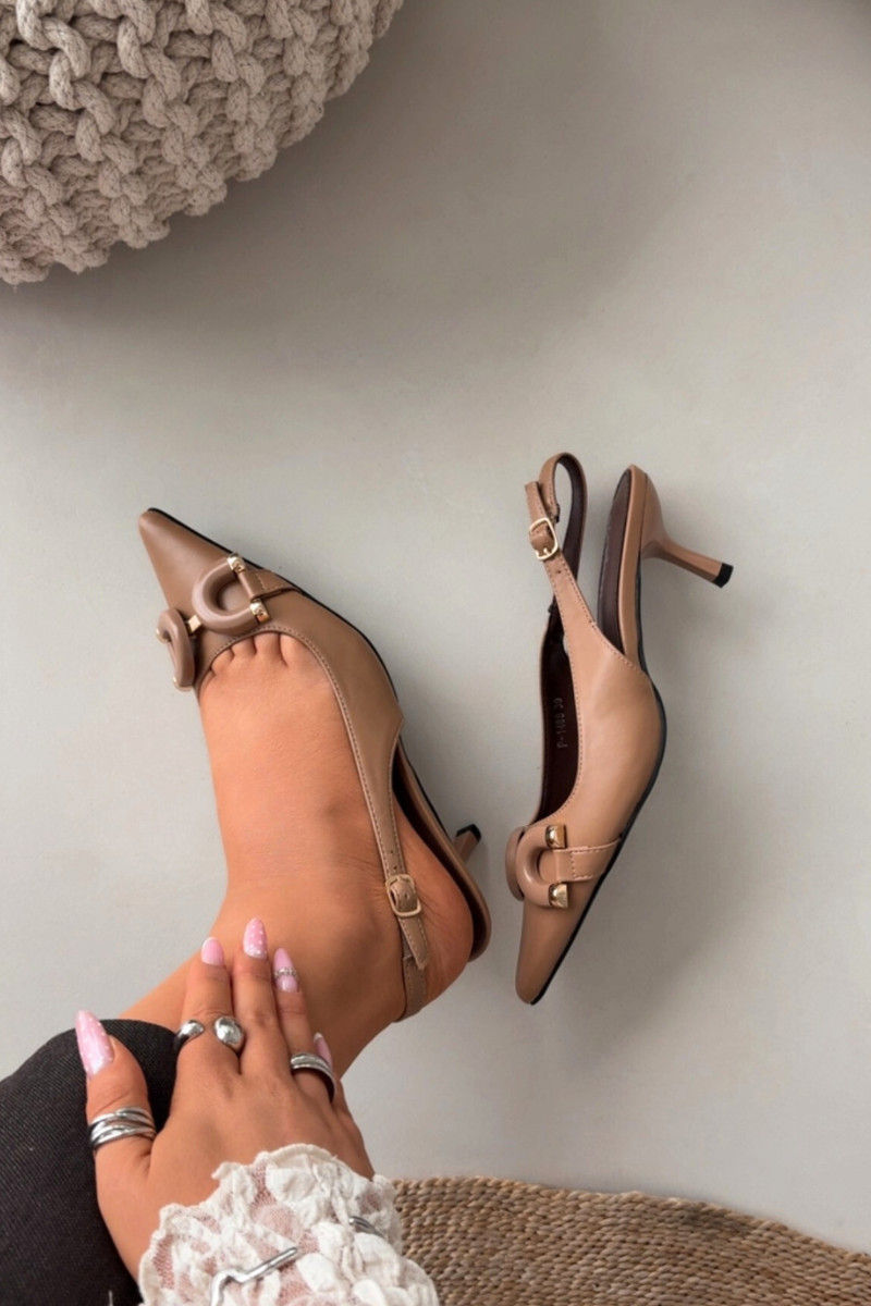 Dámske papuče so zlatými sponami, hnedé