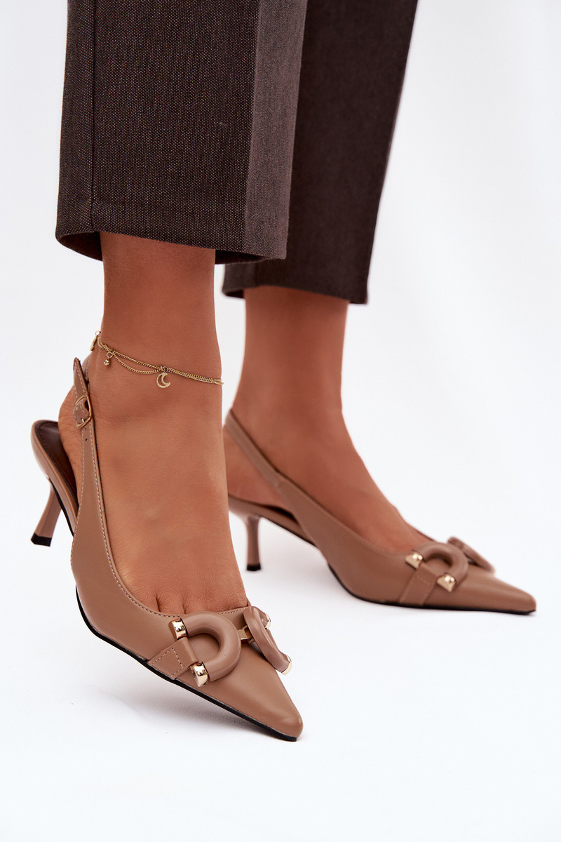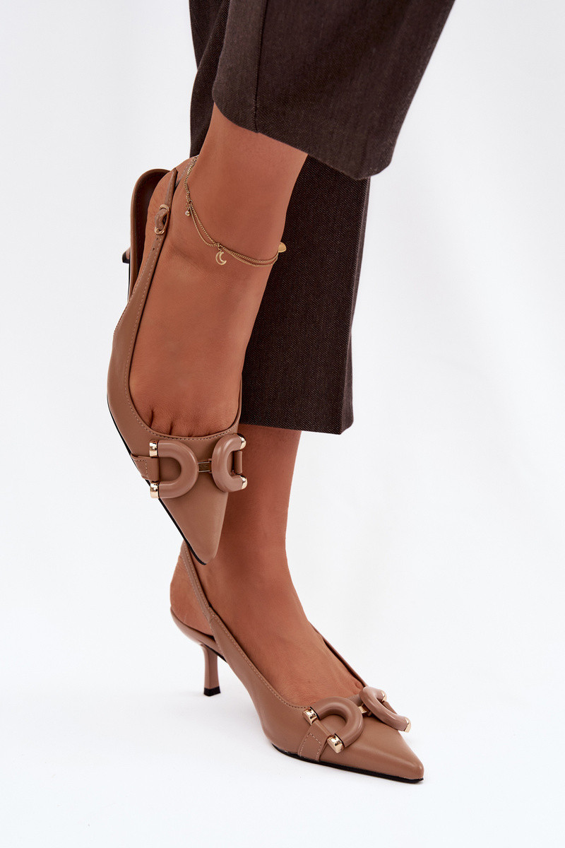Dámske sandále s tenkými podpätkami S Ornatem Detalem Hnedá farba Brienne