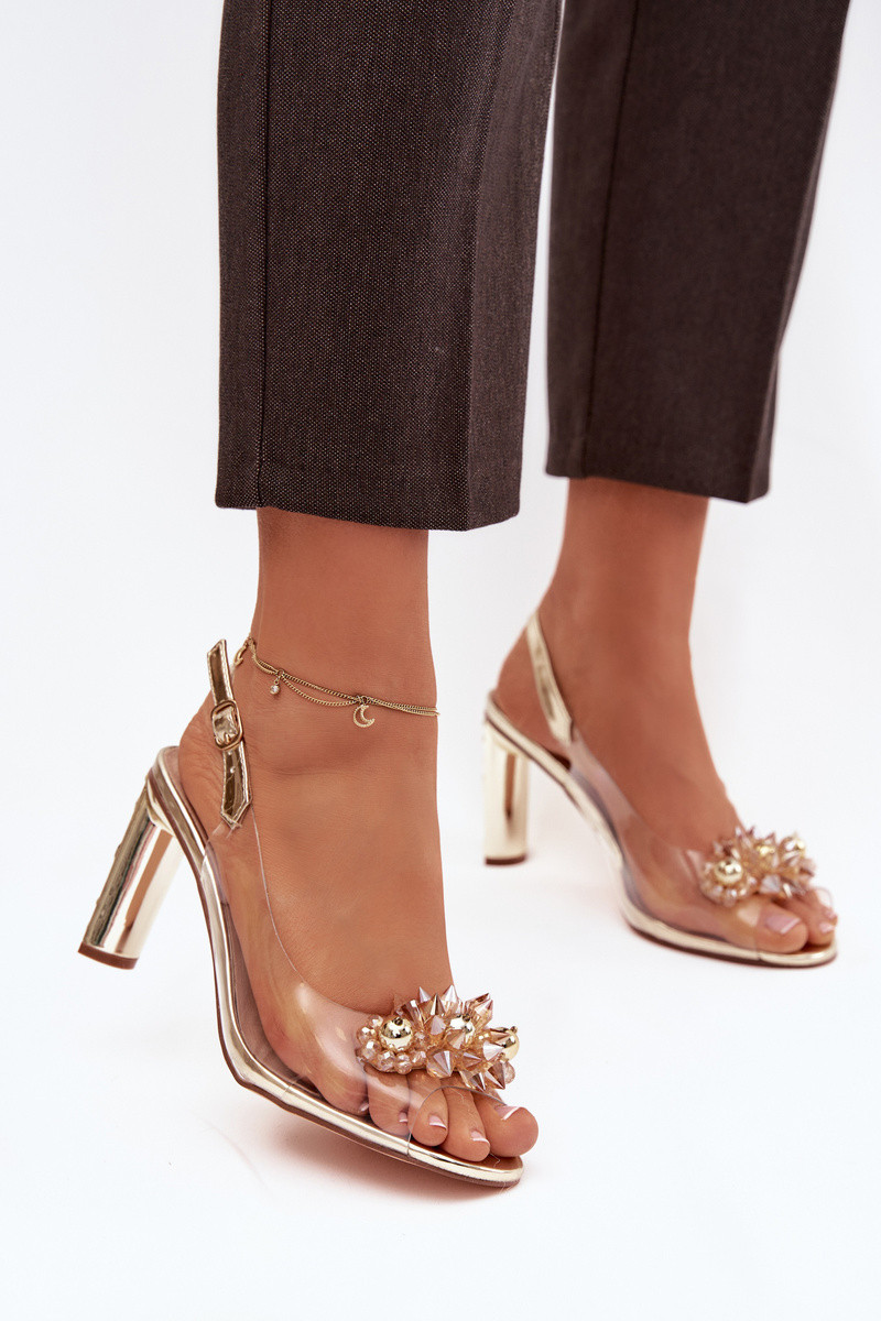Zlaté priesvitné sandále D&A MR52-232 s podpätkami a krásnymi detailmi