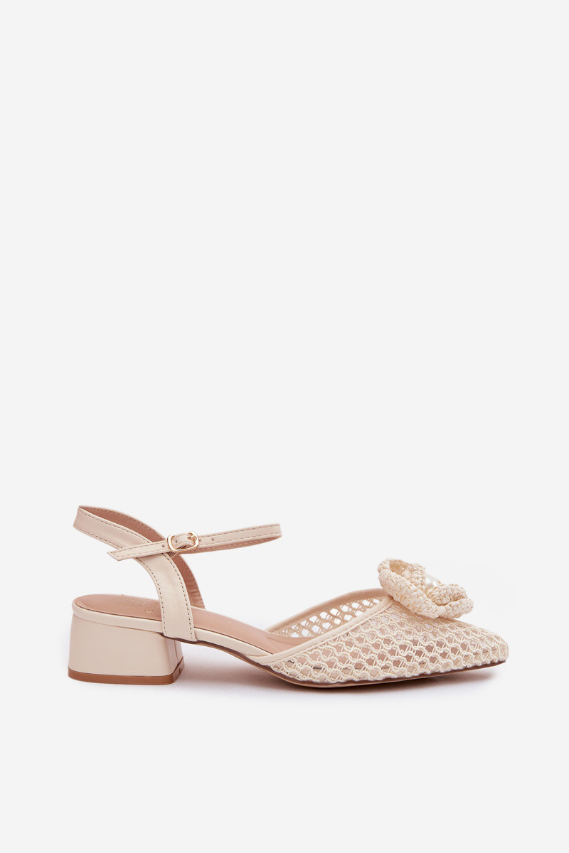 Dámske sandále s podpätkom a ozdobnými detailmi, farby slonoviny Vionessa