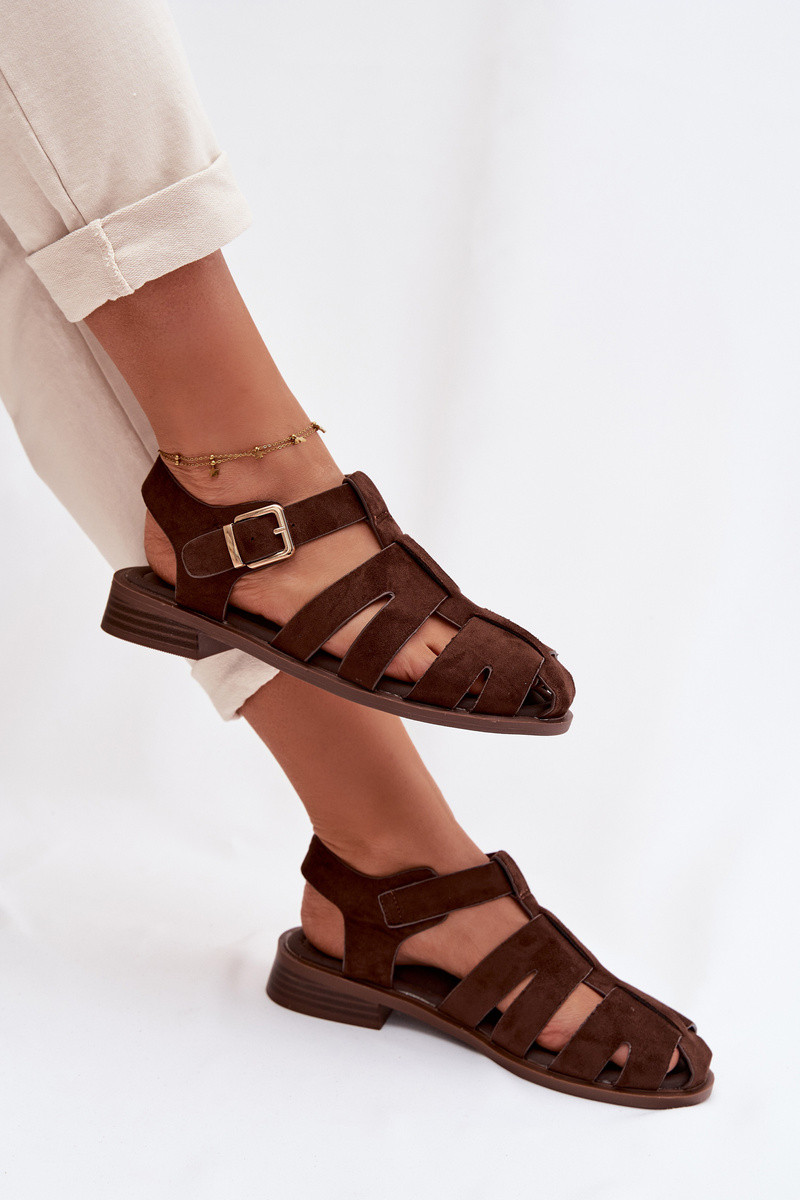 Dámske sandále so zlatými sponami, čokoládovej farby, Janessa