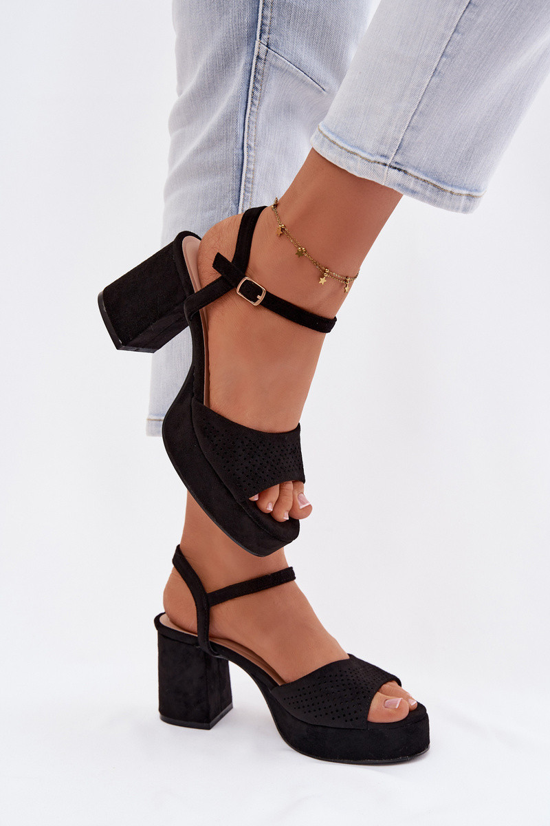 Dámske sandále na vysokom opätkuz eko semišuu čierna Iserelle