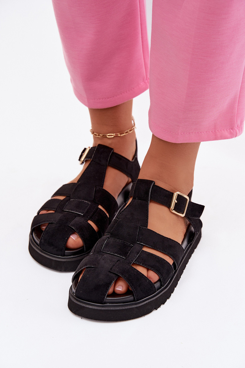 Dámske sandále Rzymianki so zlatými prackami s platformou čierna Terelina