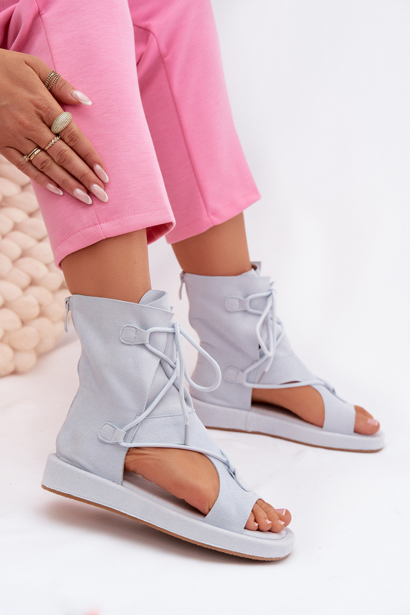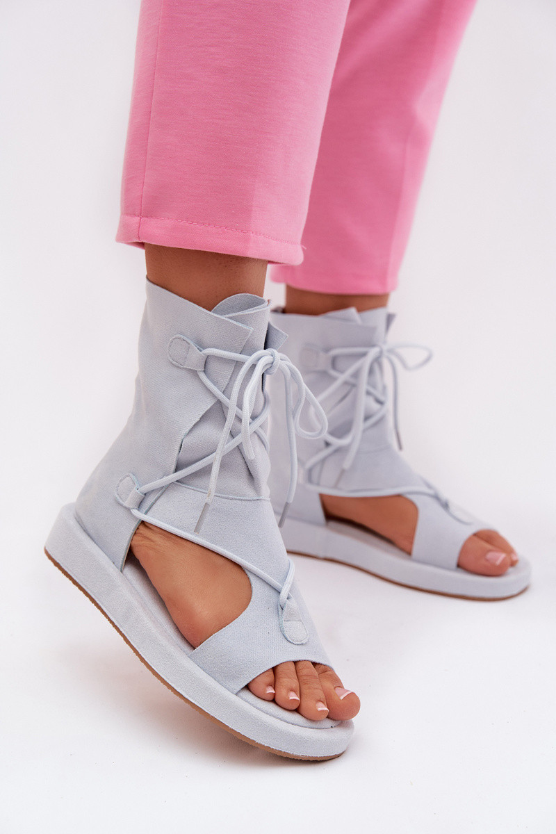 Dámske sandále z eko semišuoIne s čižmami I INiązaniem svetlo modrá Ferlisse