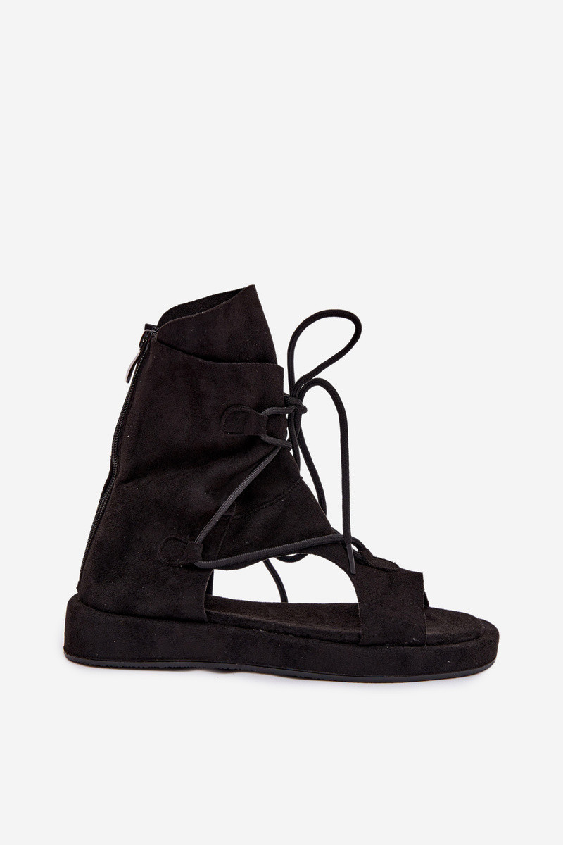 Dámske sandále z eko semišuoIne s čižmami I INiązaniem čierna Ferlisse