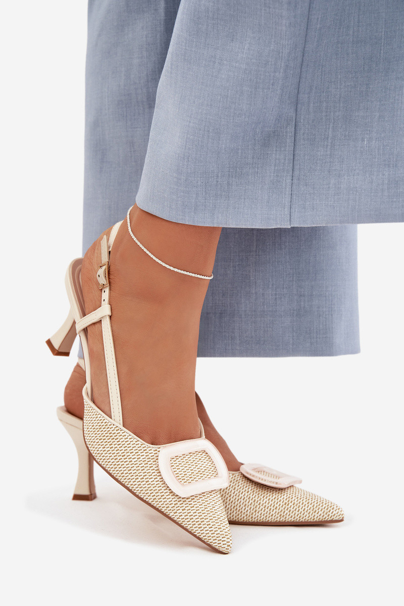 Dámske sandále s podpätkami a ozdobnými prvkami v pieskovej farbe Eslina