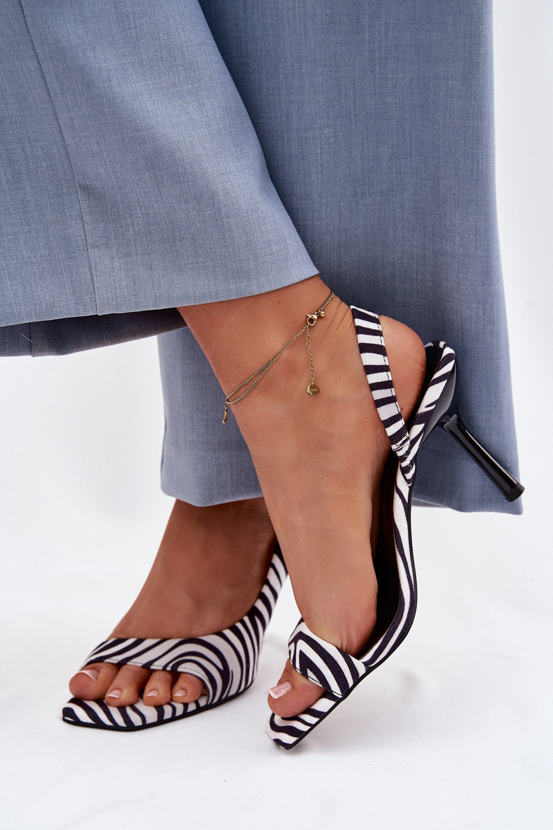 Dámske sandále s tenkými podpätkami z umelej semišovej tkaniny s pruhovaným vzorom Calvoria