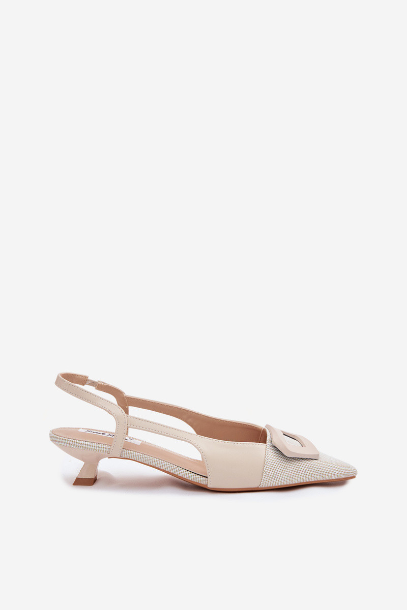 Dámske sandále na nízkom podpätku s ozdobnými detailmi pieskovej farby Camira