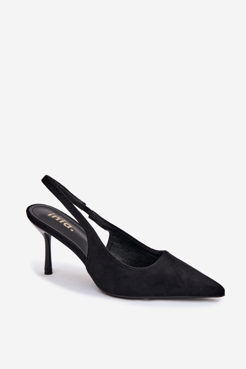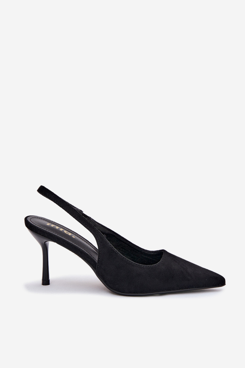 Dámske sandále s tenkými podpätkami z umelého semišu čierne Kevina
