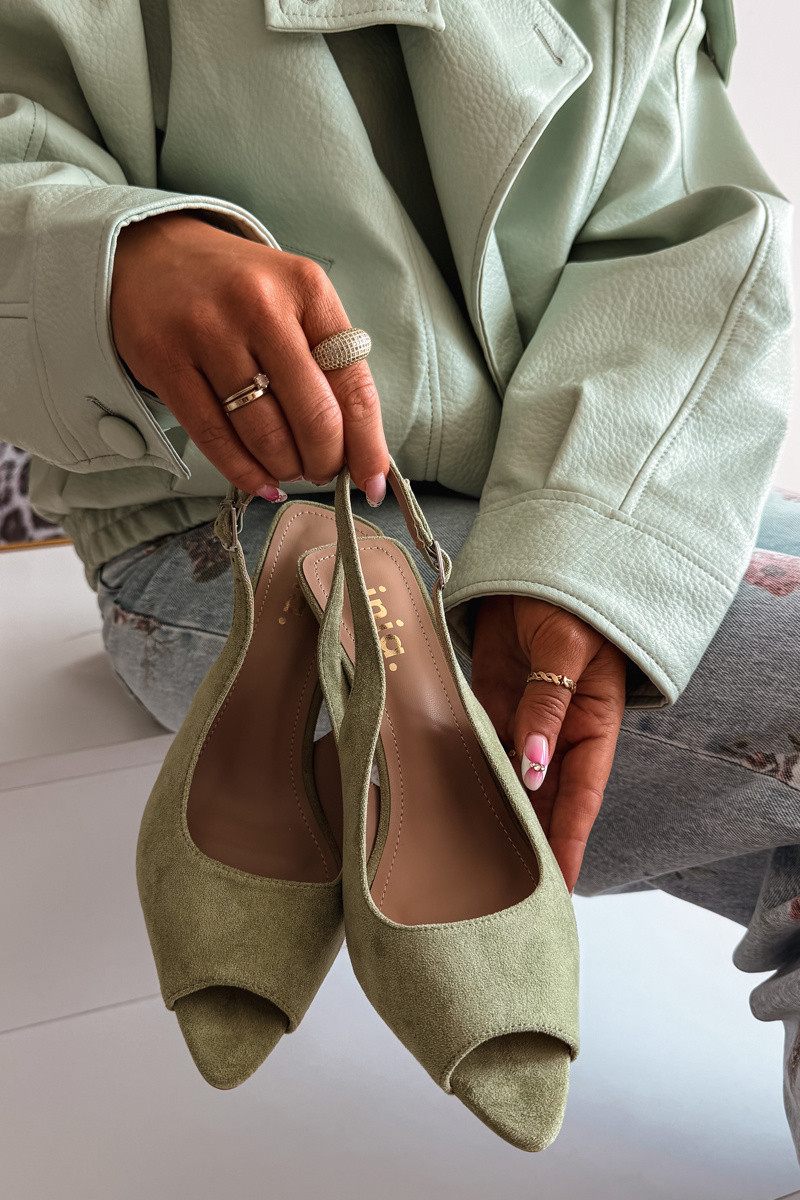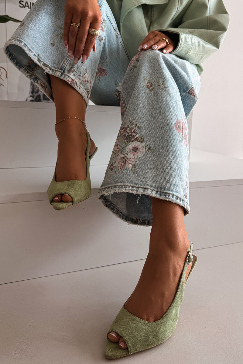 Dámske sandále s tenkými podpätkami z eko semišuoIne zelená farba Sevina