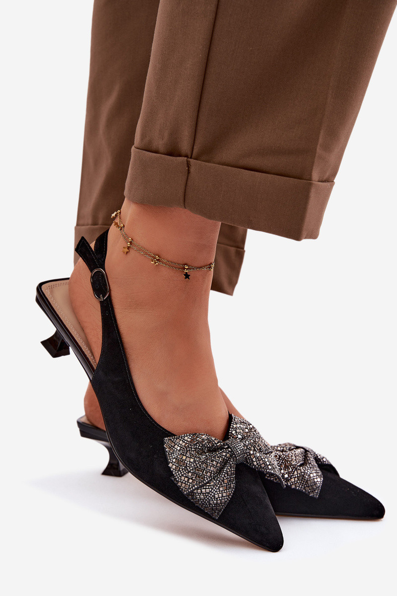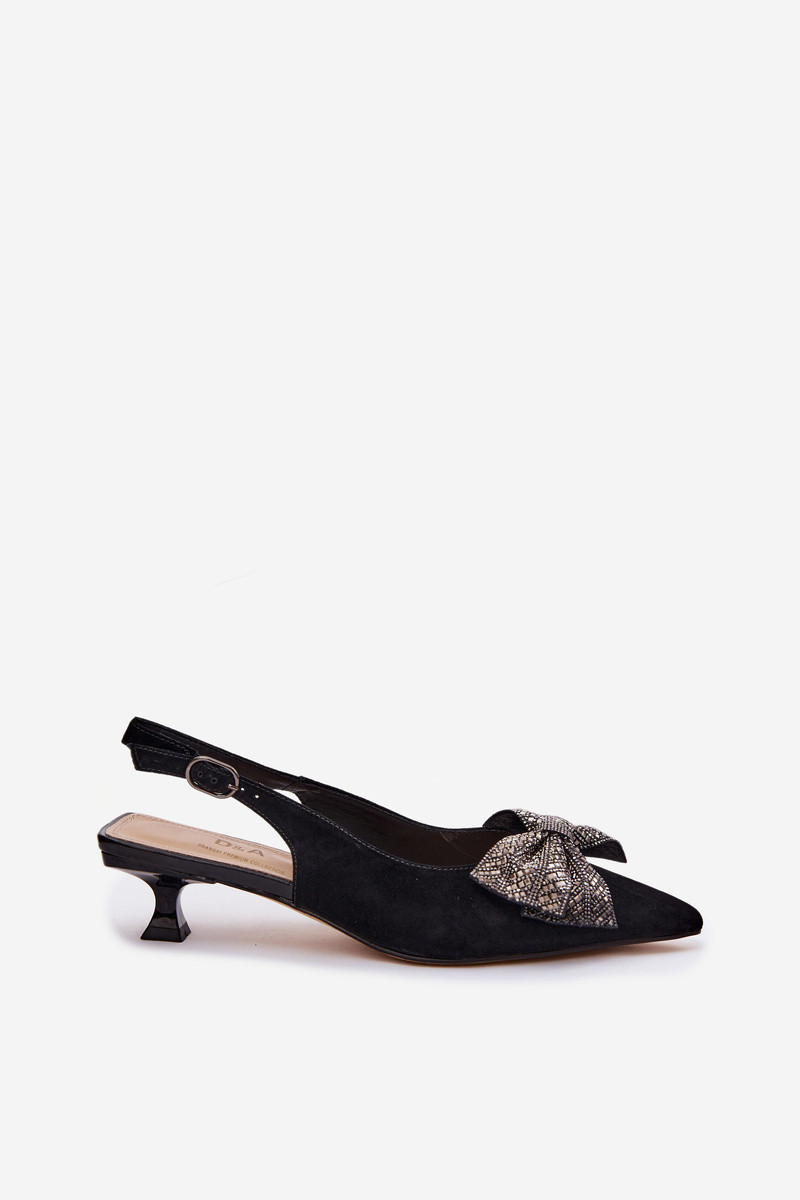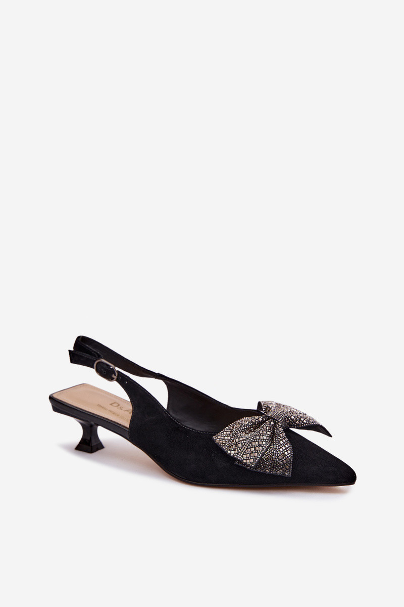 Semišové sandále s mašľami a podpätkami D&A CR61-3130 čierne