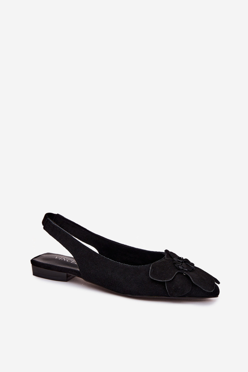 VINCEZAsandále Kožené zo semišu so širokými podpätkami S Ornatem Kvet Vinceza 66951 čierna