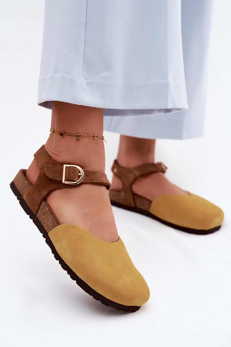 Kožené semišové sandále so zatvorenými prstami Tai turiciejka H7365-07 žlté