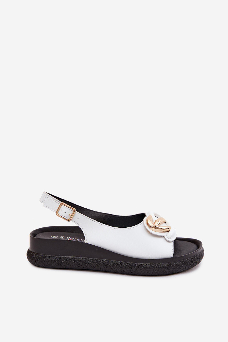 Kožené platformové sandále s ozdobami v bielej farbe