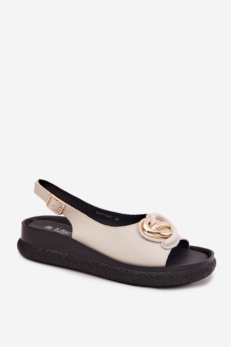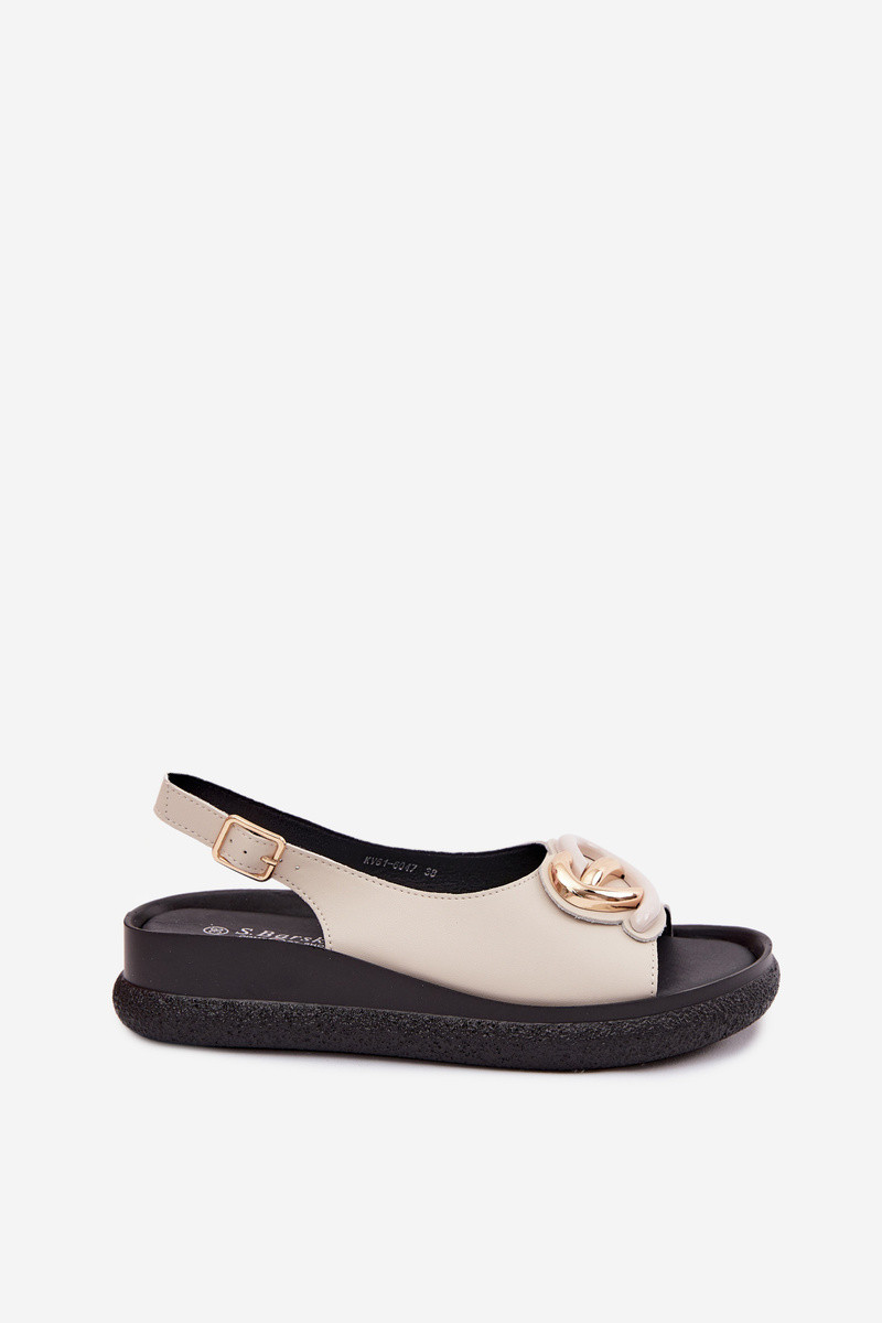 Kožené platformové sandále s ozdobami v pieskovej farbe