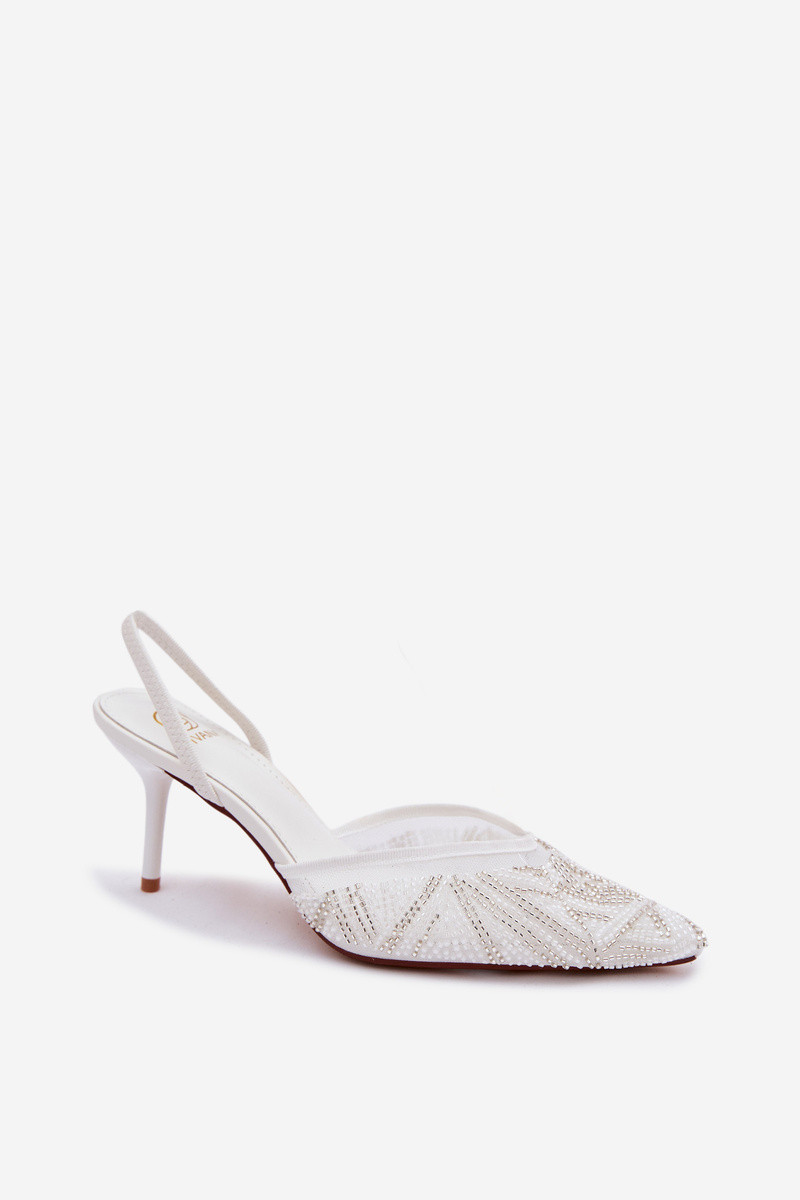 Dekorované sandále so sieťkou a tenkými podpätkami pieskové Bedira