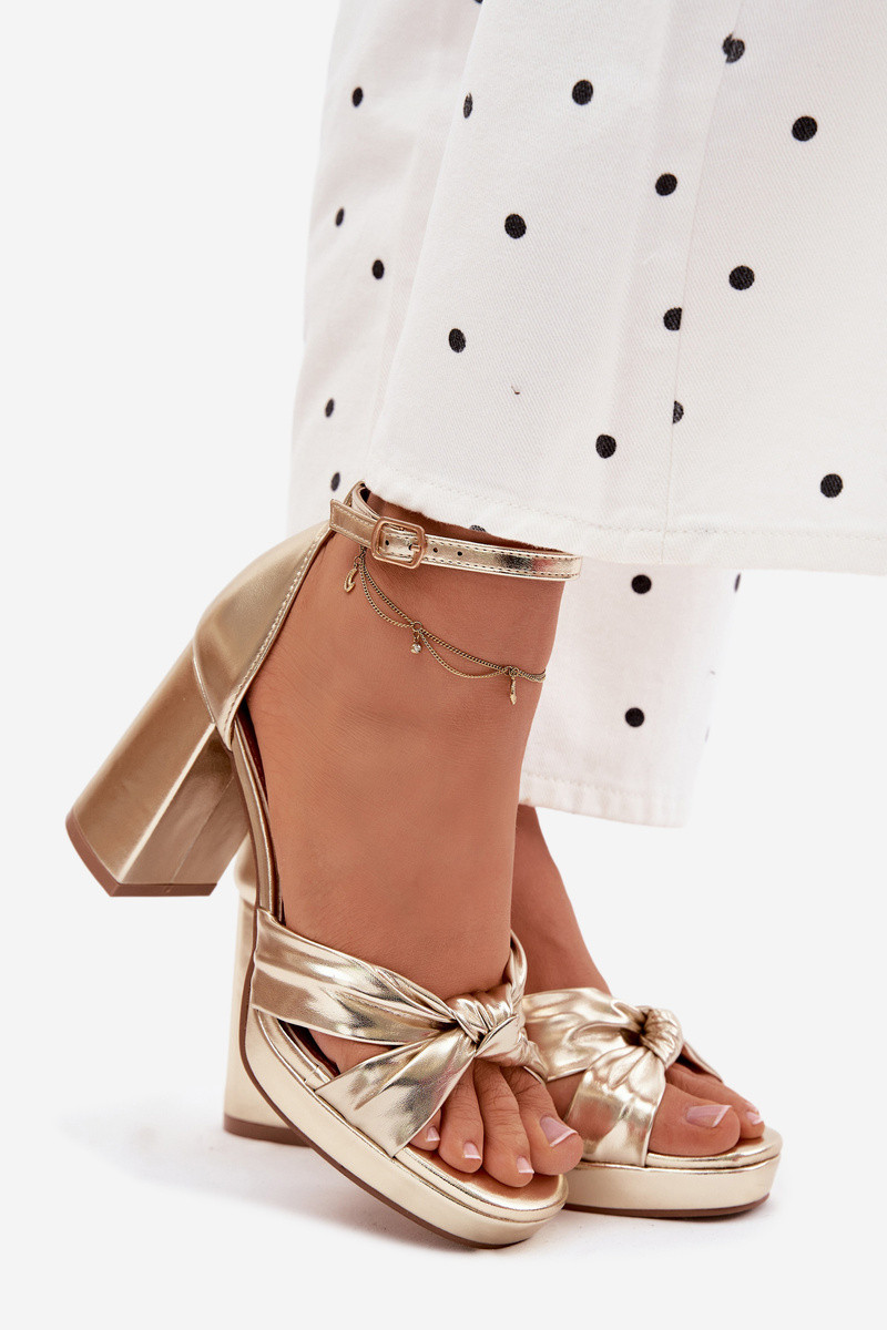 Dámske sandále na vysokom opätkuImitacji Skóry zlatej farby Rosetta