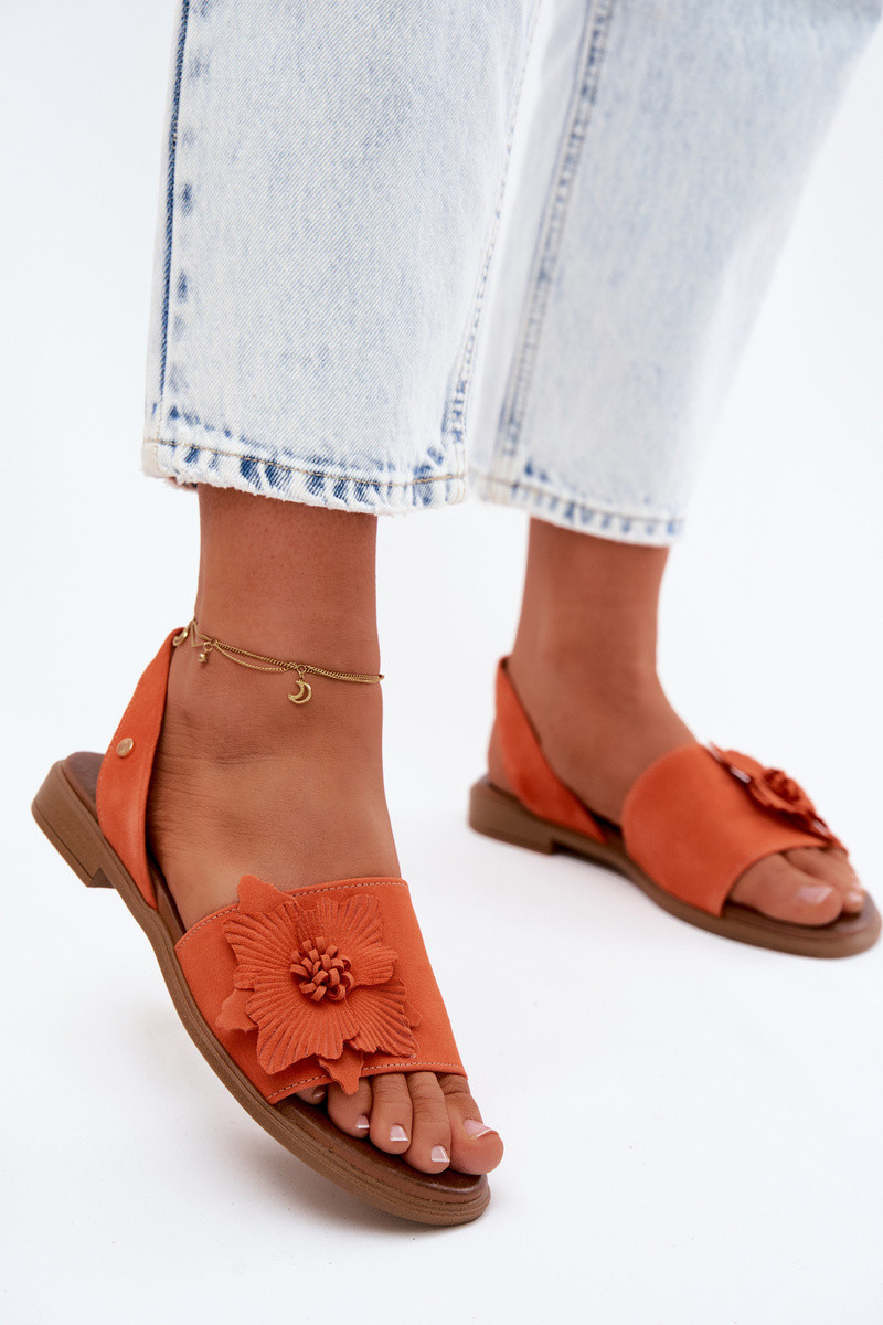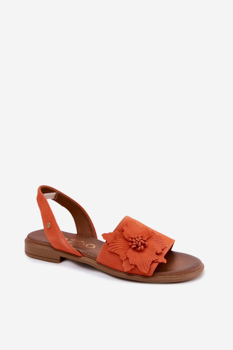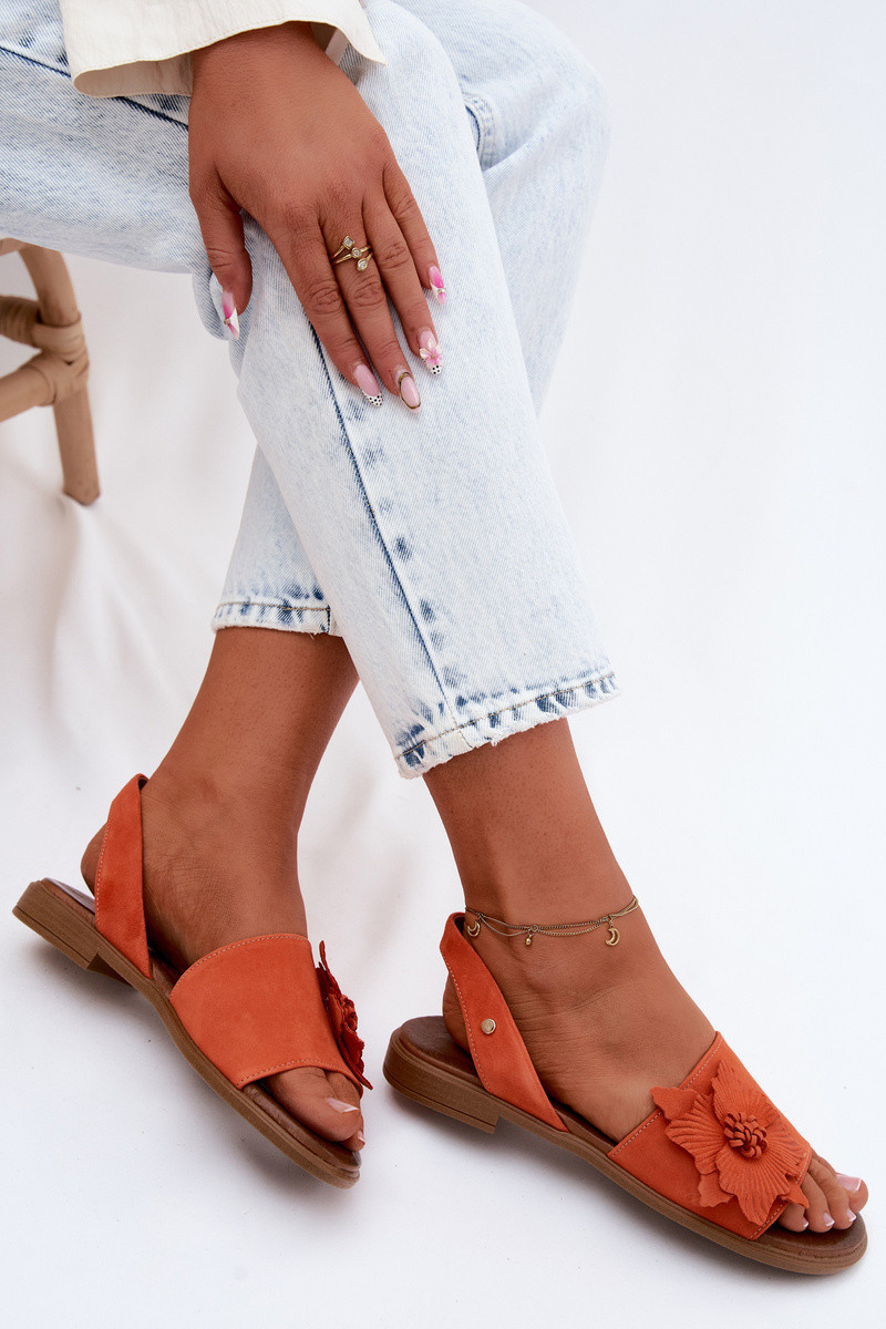 ZazooKožené Semišové sandále so širokými podpätkami S Ornatem Kvet Zazoo 407471 oranžová