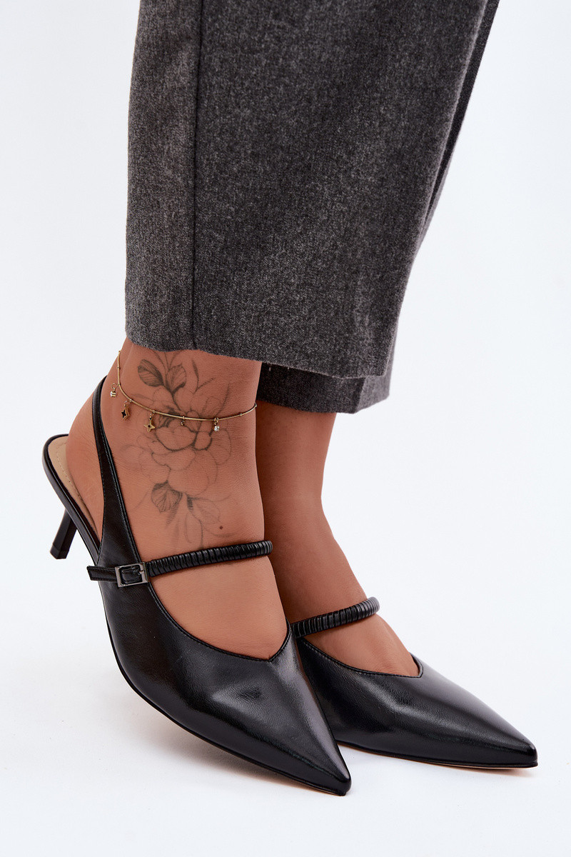 Kožené Topánky Sandále na vysokom podpätku s popruhmi D&A CR61-3046 čierna