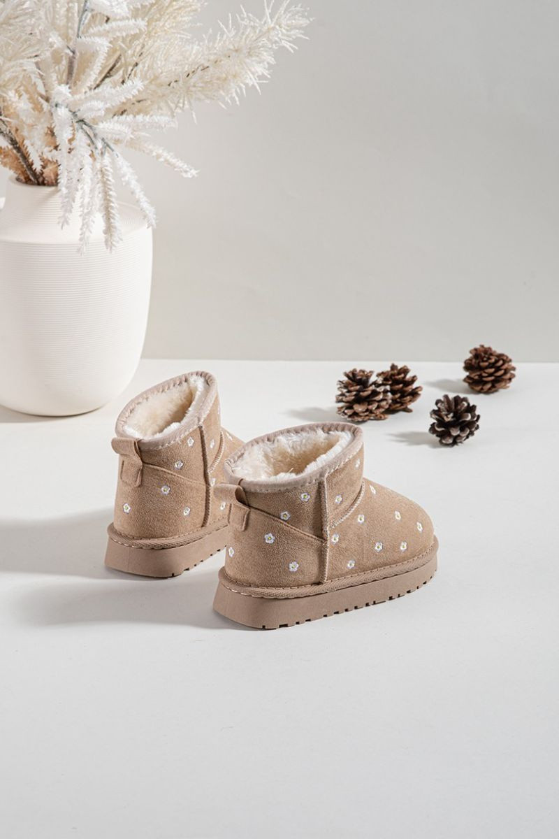 Detské snehové topánky s kvetinovými motívmi Gracina pieskovej farby