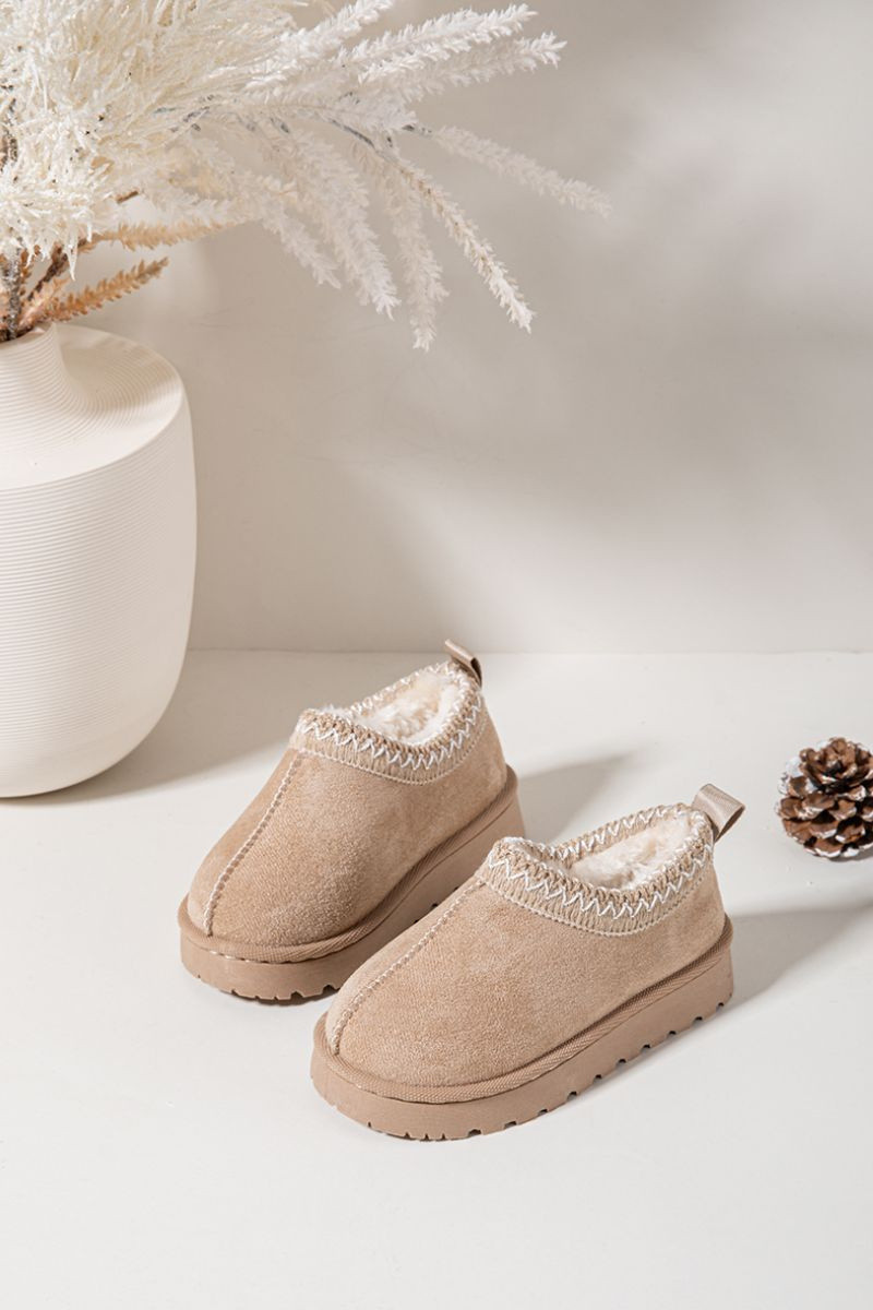 Detské snehové topánky s vyšívaním Prina, pieskové