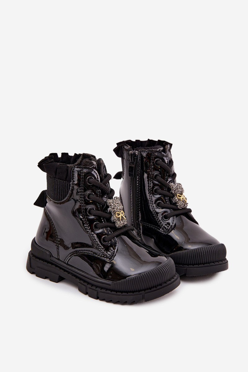 Detské lakované teplé členkové topánky s ozdobou "Mackovia" čierne Fionessa