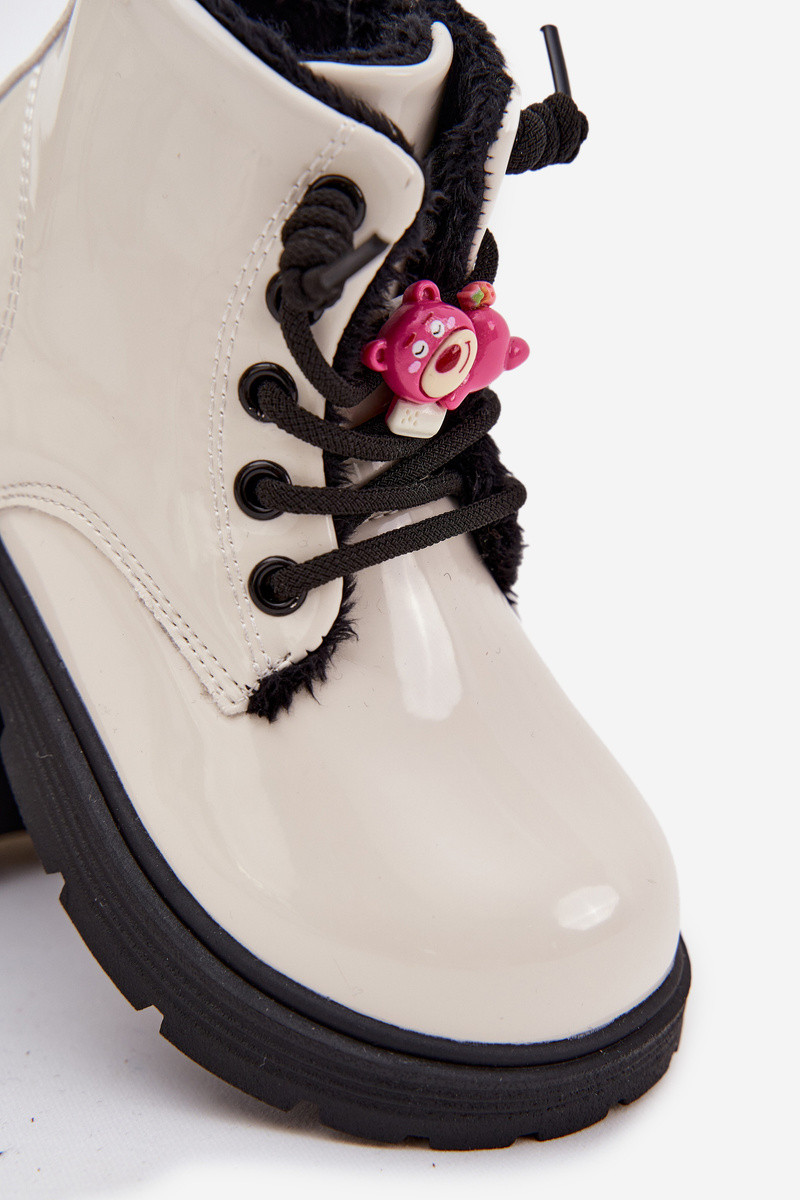 zahriať sa Čižmy deti s lakovým efektomPrzypinką plyšové medvede biela farba Jovellea