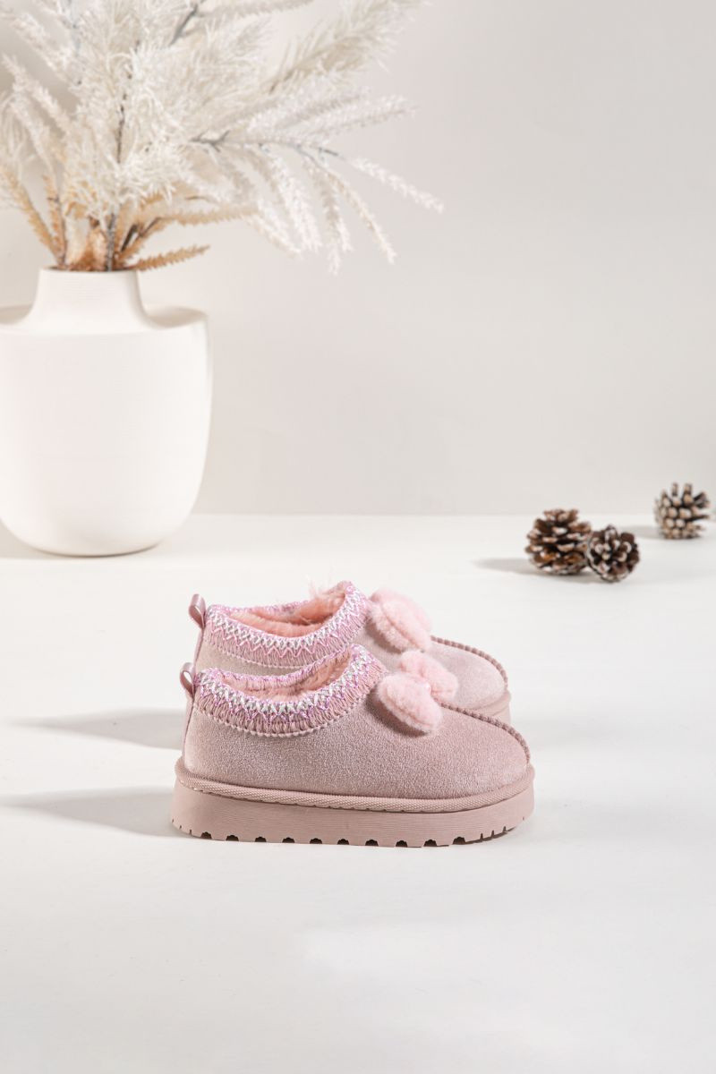 Detské snehové topánky s vyšívaním a stuhou v ružovej farbe Daven